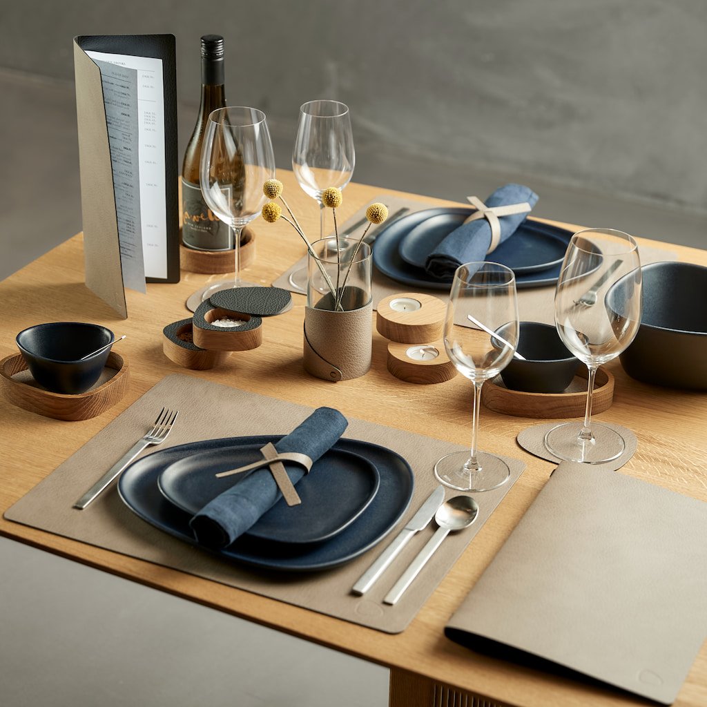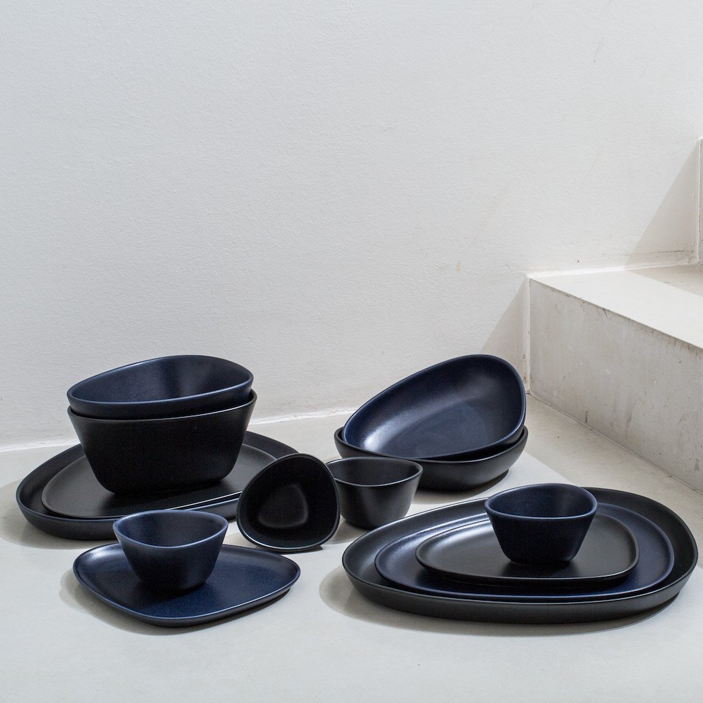 - Tumma sininen -väri antaa pöydälle elegantin ilmeen ja luo täydellisen kontrastin värikkäiden astioiden kanssa.