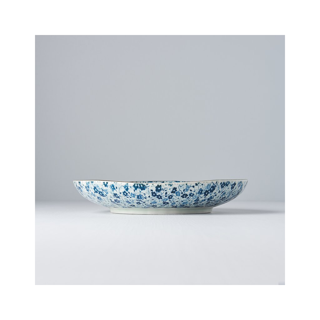Blue Daisy -malliston matala lautanen MIJ on valmistettu käsin kestävästä luonnonkeramiikasta, joka ei sisällä haitallisia epäpuhtauksia tai raskasmetalleja. Sitä valmistavat japanilaiset mestarit, joiden perinne juontaa juurensa 1200-luvulle. Maalit ovat korkealaatuisia, ne eivät kuoriudu eivätkä sisällä haitallisia aineita.
