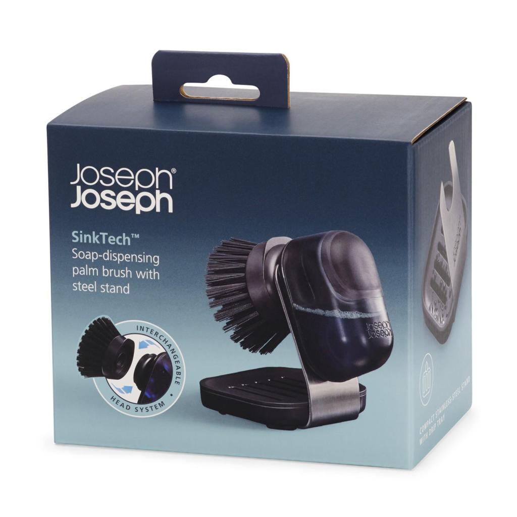 - Pakkauksessa on kompakti harja pesuaineannostelijalla ja ruostumattomasta teräksestä valmistettu teline tippakaukalolla, ja vaihtopäitä on saatavana erikseen.