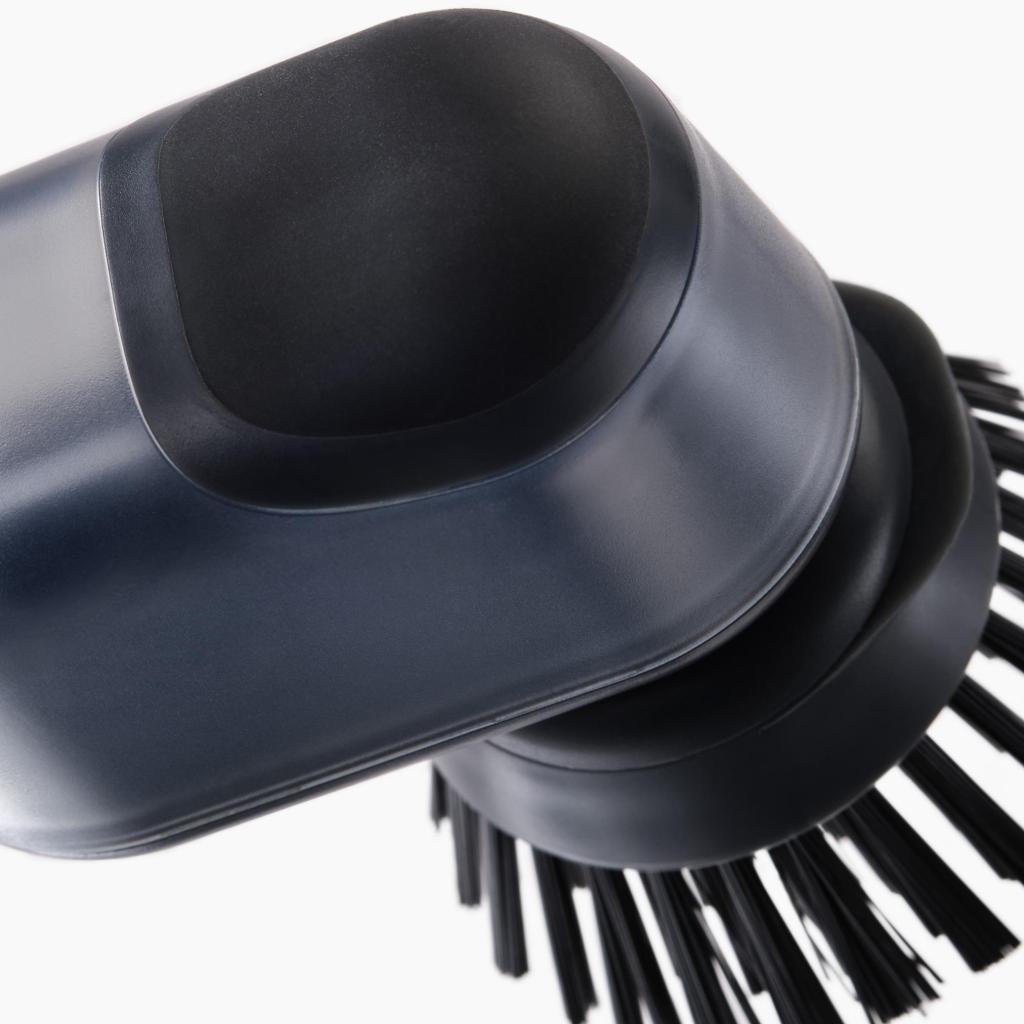 - Paina vain yläpainiketta, niin tarkka määrä nestemäistä pesuainetta vapautuu suoraan harjasten päälle välitöntä ja tehokasta puhdistusta varten.