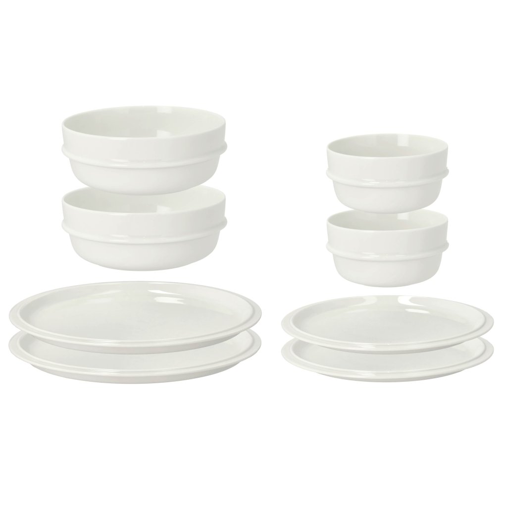 Astiasto EAU, 8 kpl sarja, valkoinen, posliini, vyöhyke Tanska