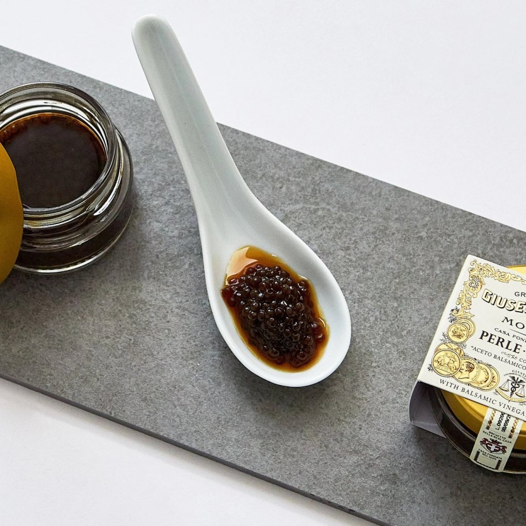 - modenasta peräisin olevat balsamiviinietikan helmet ovat pieniä mustia palloja, joiden koostumus on hyytelömäinen ja jotka muistuttavat kaviaaria