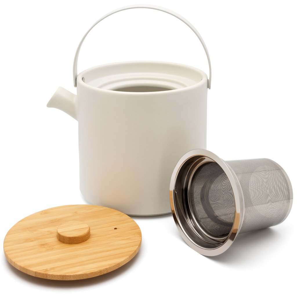 - materiaali: keraaminen, ruostumaton teräs (siivilä), bambu (kansi)