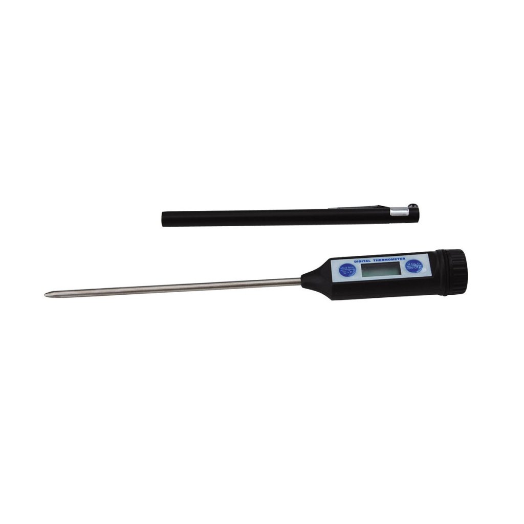 Tarkka digitaalinen lämpömittari lihan lämpötilan tarkistamiseen kypsennyksen aikana. Lämpötilan välitön näyttö -50 °C:n ja +200 °C:n välillä. 12 cm:n pituinen ruostumattomasta teräksestä valmistettu anturi takaa helpon tunkeutumisen lihaan. Ei sovellu uuniin eikä astianpesukoneeseen.