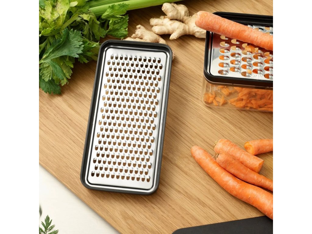 - Käytännöllinen raastinrauta GRATE-IT on älykäs keittiöapulainen, joka yhdistää raastimen ja säilytysastian toiminnot.