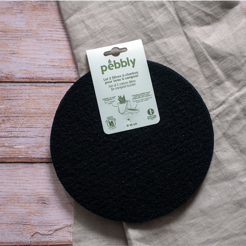 - 2 vaihtohiilisuodattimen sarja Pebbly on suunniteltu 3,5 litran tilavuudelle ja 19 cm:n halkaisijalle tarkoitetuille kompostoreille.