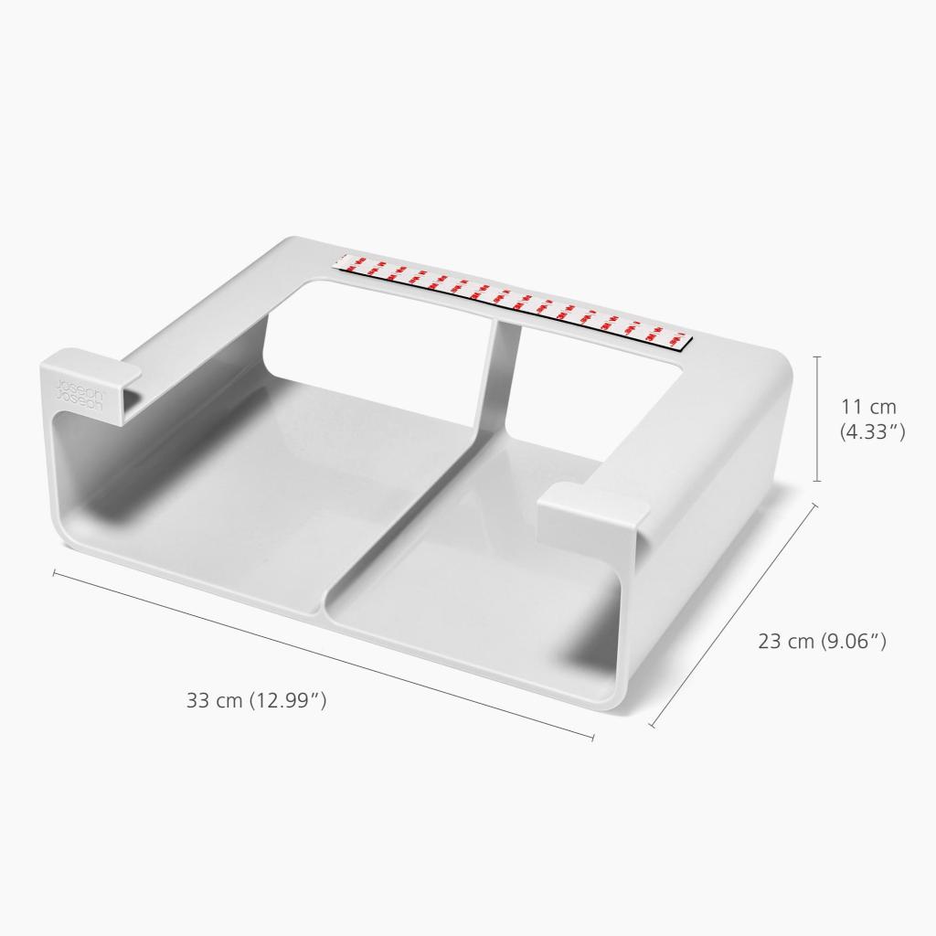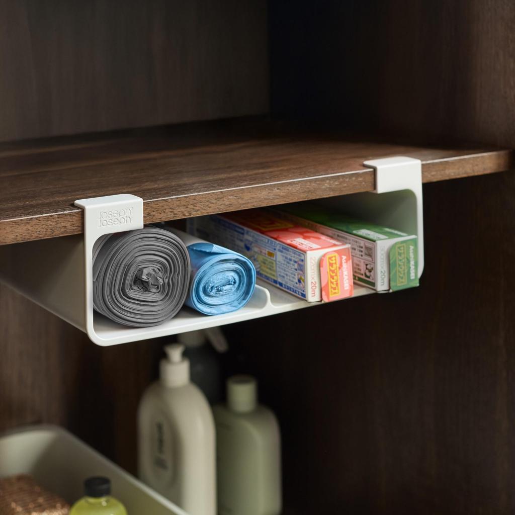 - Joseph Joseph CUPBOARDSTORE -järjestäjä auttaa hyödyntämään vapaata tilaa keittiön kaapin hyllyn alla ja luo käytännöllisen paikan keittiökalvojen, folion tai pussien säilytykseen.