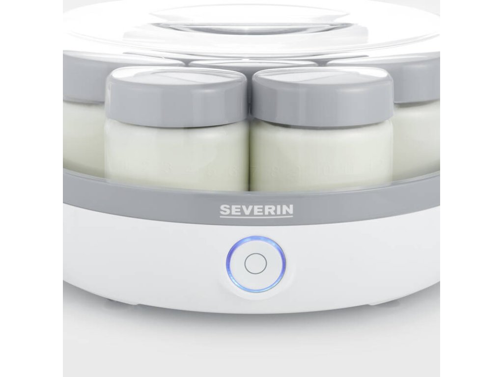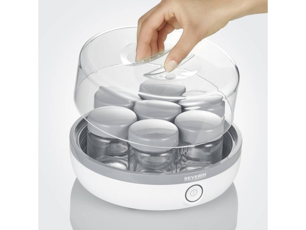 Jogurttikoneella Severin JG 3518 voit valmistaa laadukasta kotitekoista jogurttia terveellisesti ja ilman turhia "écs". Sen kansi takaa maksimaalisen hygienian valmistuksen aikana. Laite on helppo valmistaa ja sitä on erittäin helppo käyttää. Jogurttikoneeseen kuuluu myös 7 ruuvikannellista purkkia helppoa valmistusta varten. Laite on kompakti ja helppo puhdistaa.
