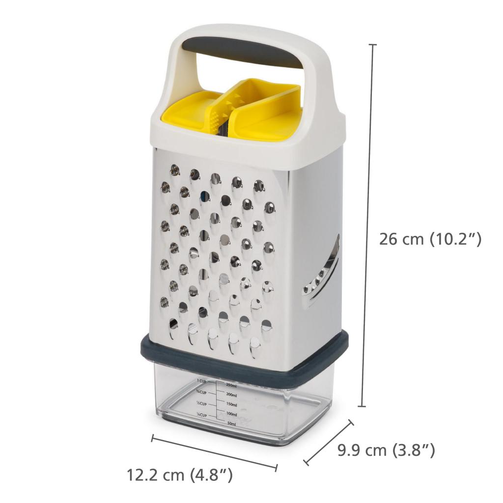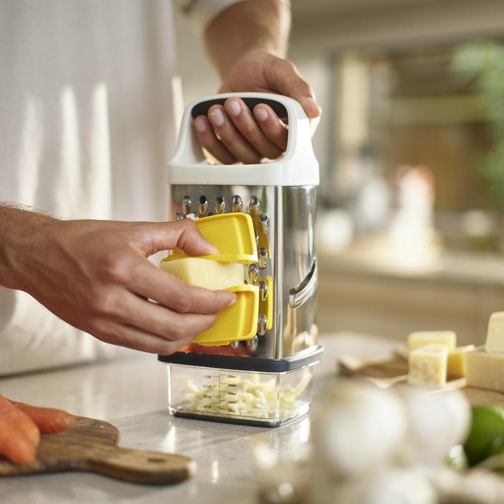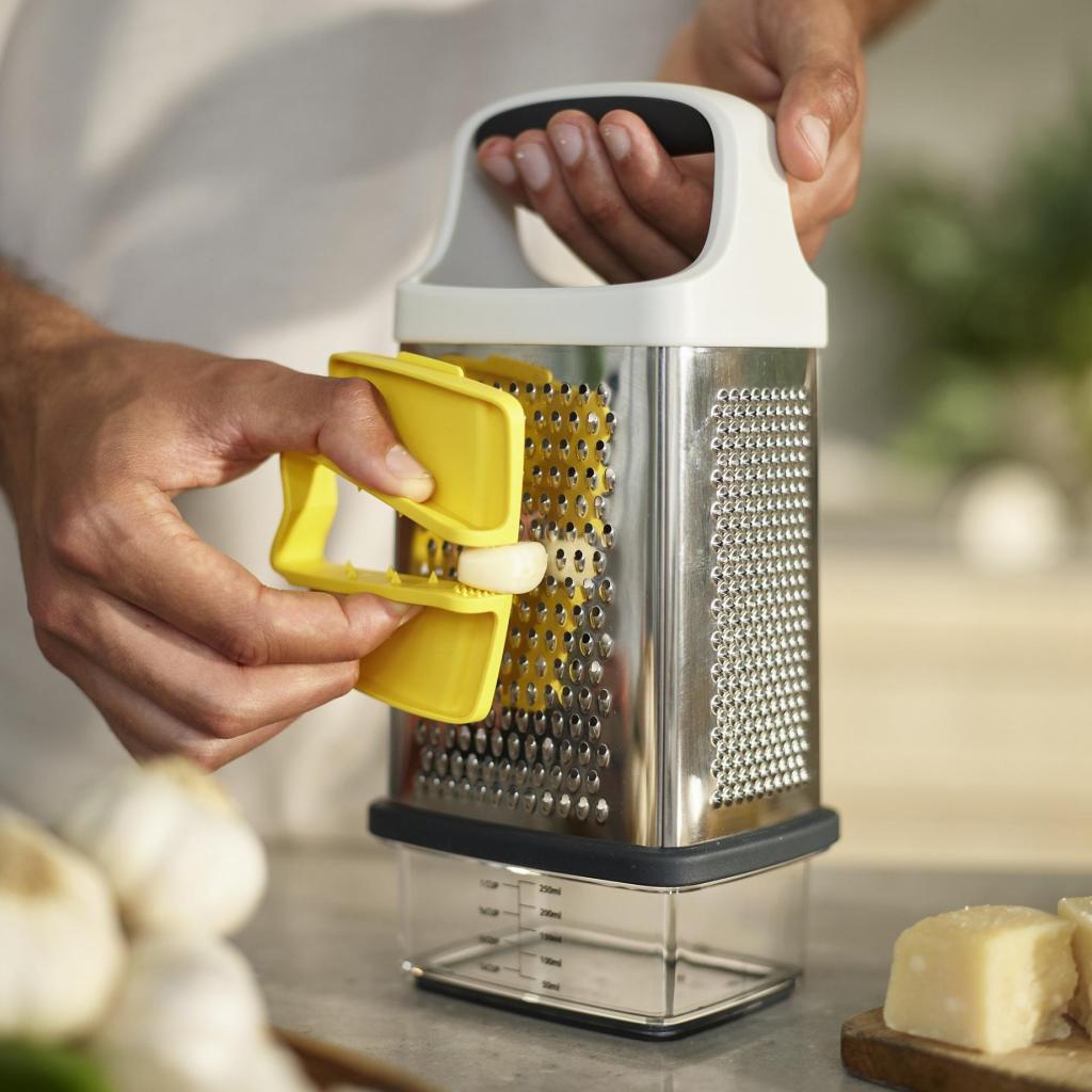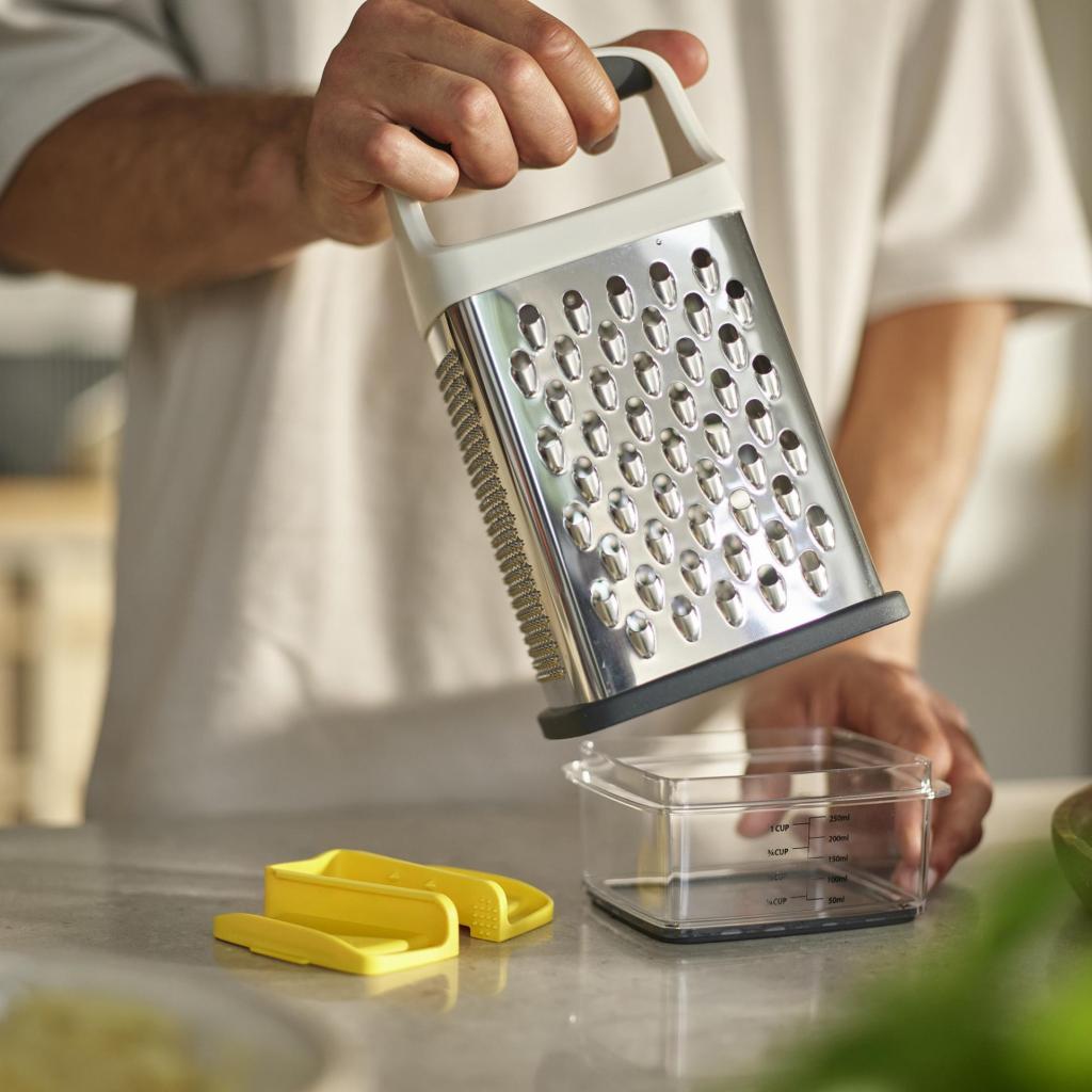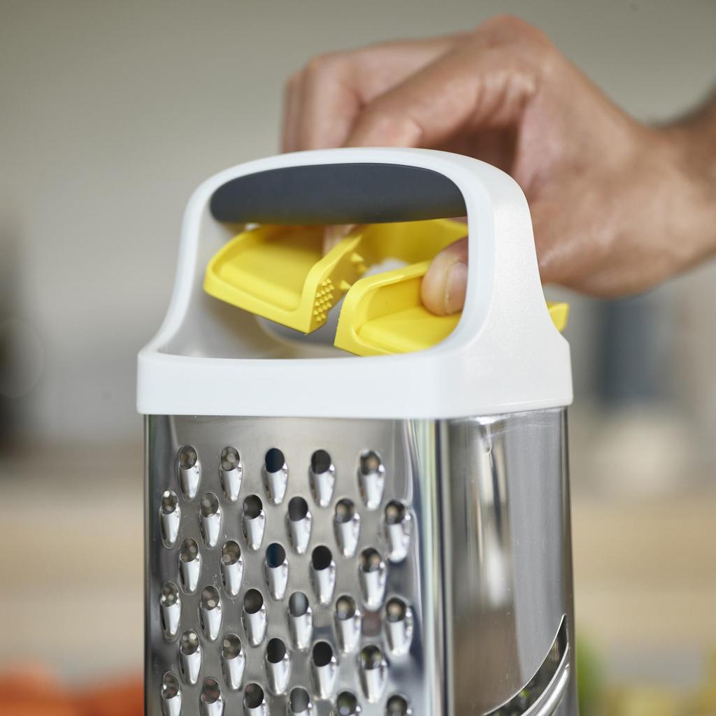 - Joseph Joseph MULTI-GRIP on käytännöllinen raastinrauta jokapäiväiseen ruoanlaittoon, joka yhdistää turvallisuuden, tarkkuuden ja harkitun muotoilun.