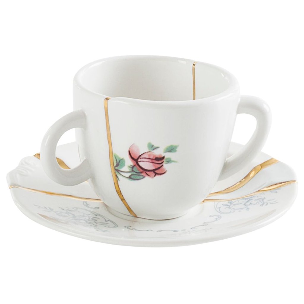 Seletti-kahvikuppi lautasella KINTSUGI 1 valkoinen