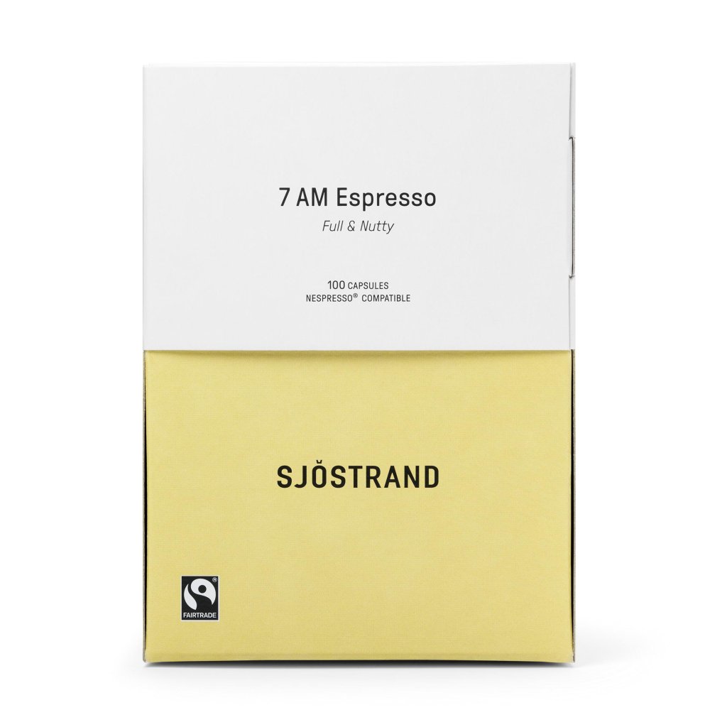 - Kahvikapselit Sjöstrand 7 AM ESPRESSO tarjoavat tasapainoisen maun ja kestävän kehityksen mukaisen lähestymistavan yhdessä, ihanteellinen aamun rauhan ja keskittymisen hetkiin.