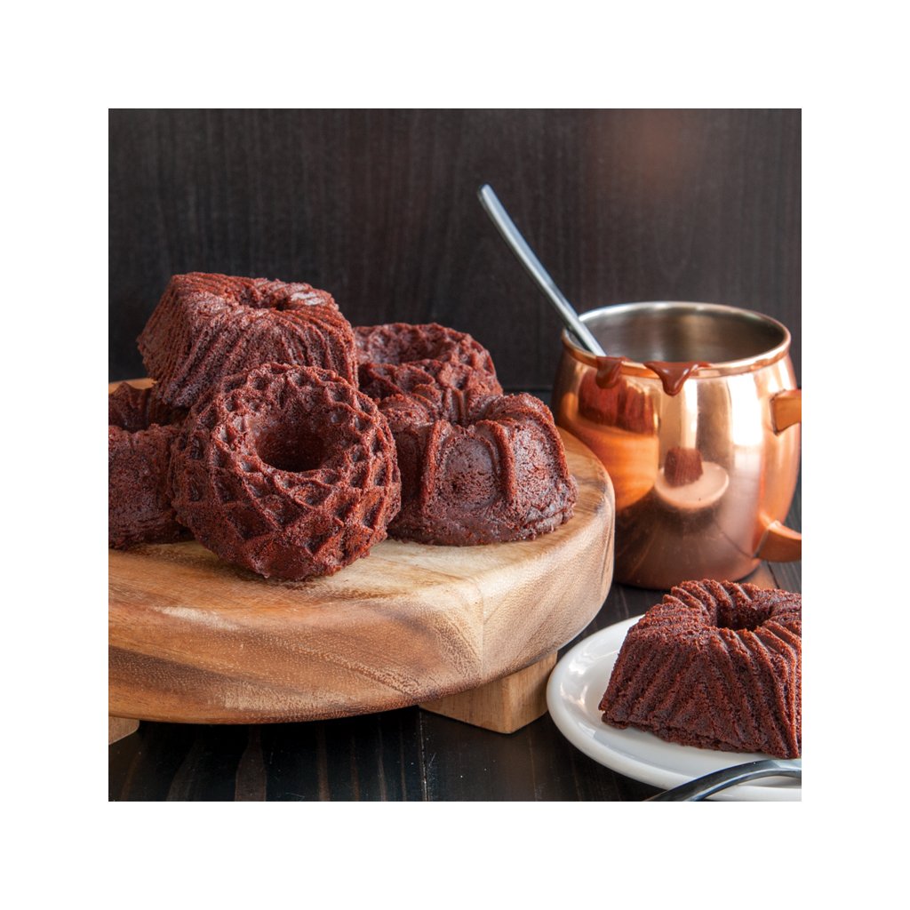 Amerikkalaisen tuotemerkin Nordic Ware ainutlaatuiseen Premier Gold Collection -mallistoon kuuluva kultainen Geo Bundt® -muoto 6 pienelle kakkuvuoalle on valmistettu korkealaatuisesta, kiinteästä valualumiinista, jossa on tarttumaton pinnoite. Paista muotissa kuusi pientä kakkua, kaksi kappaletta kutakin kuviota. Yksittäiset muodot ovat pienoismuotteja suurista kakkumuoteista, joissa on geometrisia kuvioita Bavaria Cube, Jubilee ja Holvattu katedraali. Ihanteellinen koko täsmälleen yhdelle ruokailijalle.