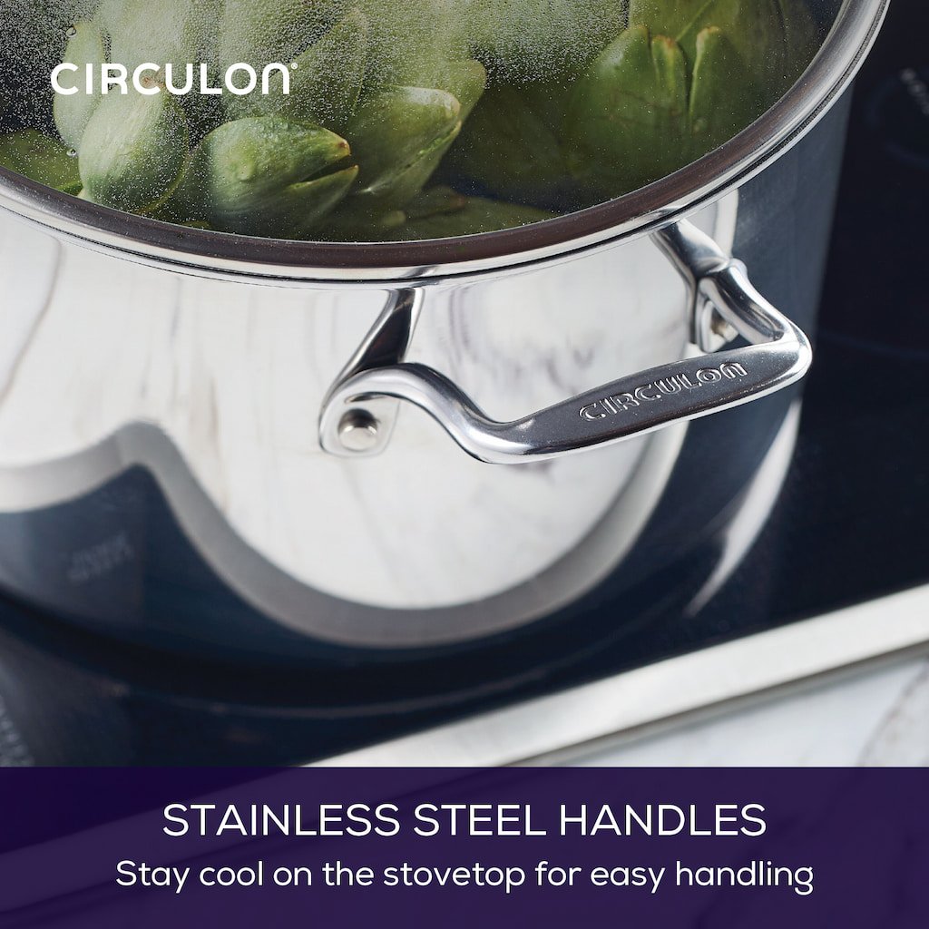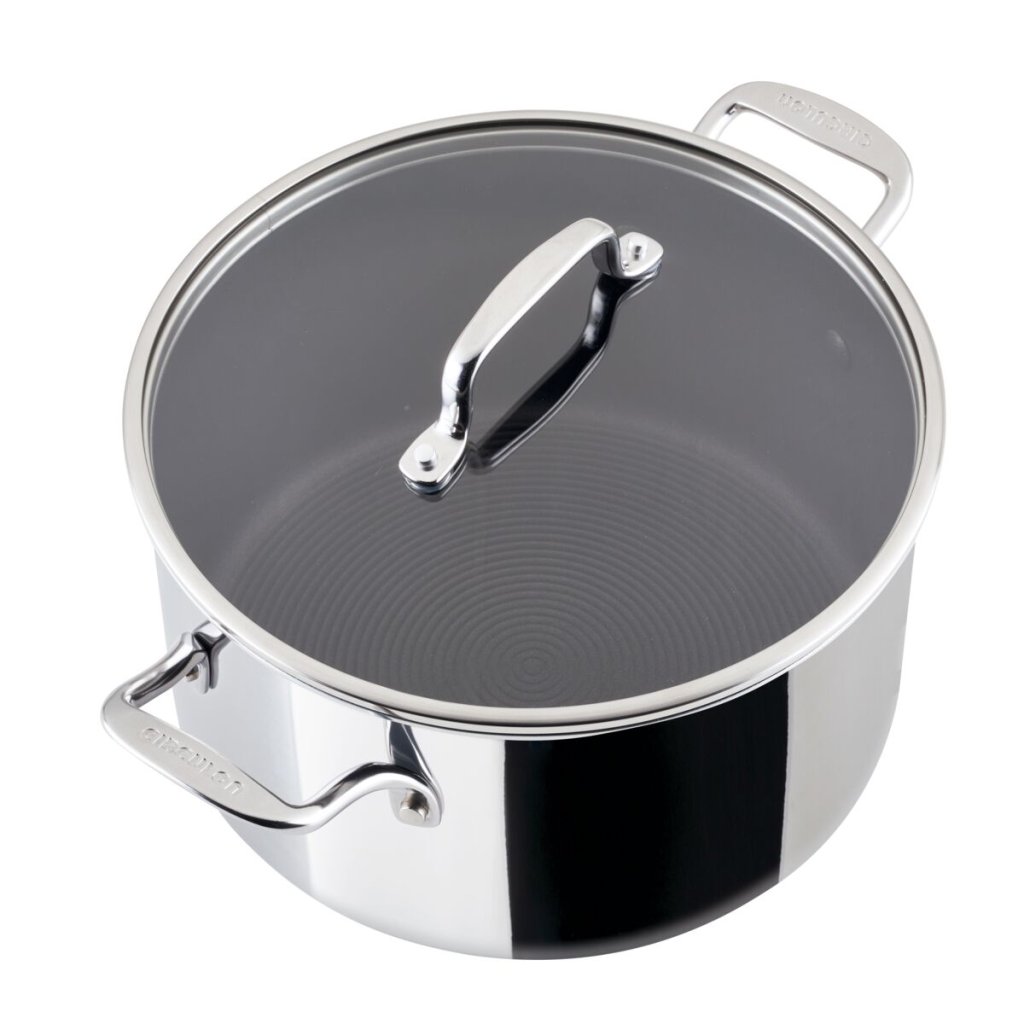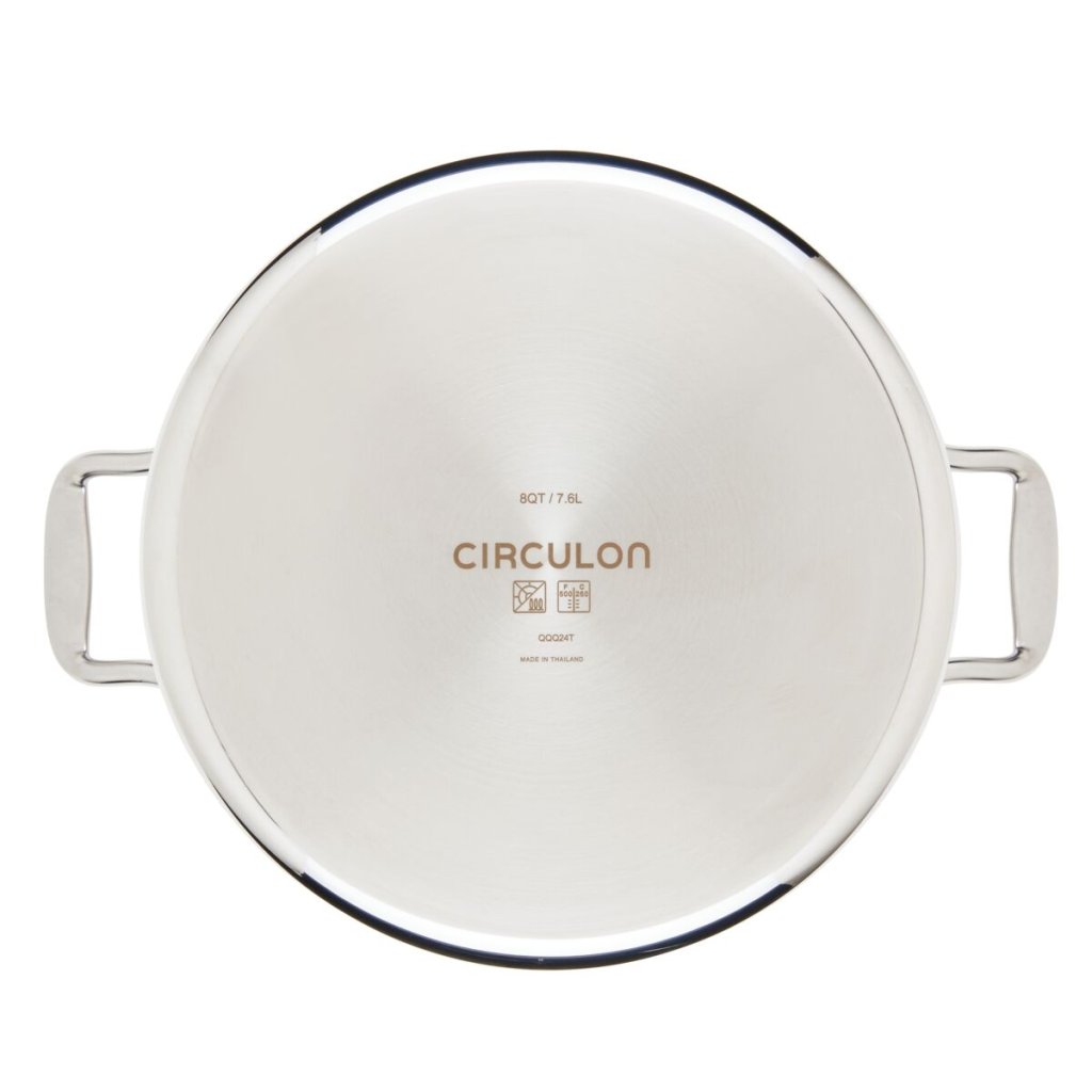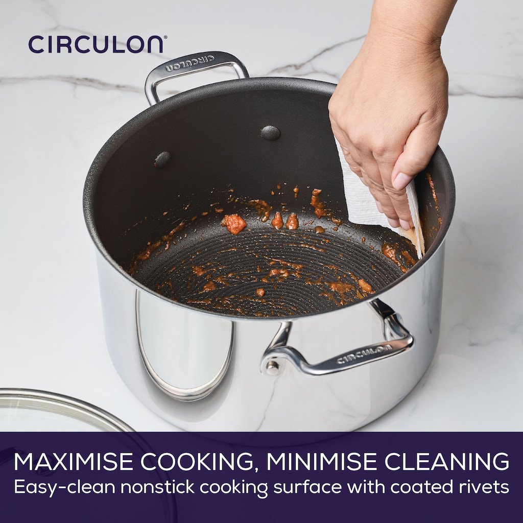 - Suuri kattila Circulon SCRATCHDEFENSE C1, jonka tilavuus on 7,6 litraa, sopii erinomaisesti keittojen, pastan tai chilin valmistukseen koko perheelle.