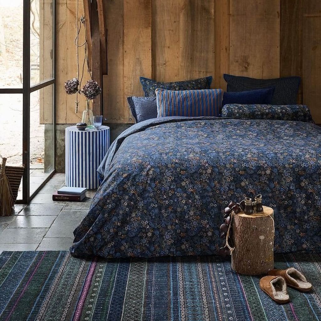 - tummansininen pohja, jossa on runsaasti kukka-aiheita, näyttää tyylikkäältä ja tuo sisustukseen ainutlaatuisen tunnelman