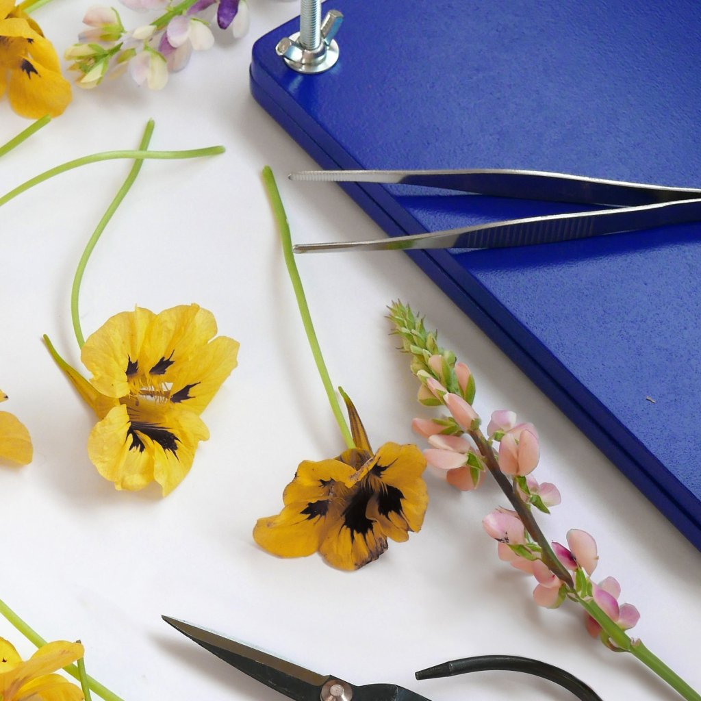 - kaksi puulevyä toimivat tukevana alustana puristamiselle ja varmistavat kasvien tasaisen puristamisen