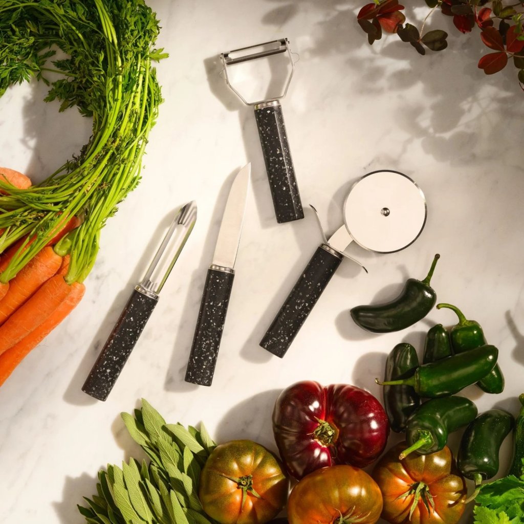- ihanteellinen perunoiden, omenoiden, kurkkujen ja muiden hedelmien ja vihannesten kuorimiseen ilman turhaa jätettä