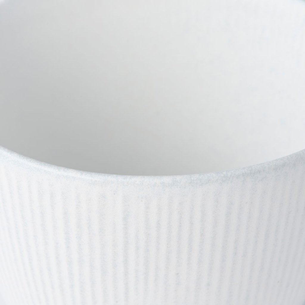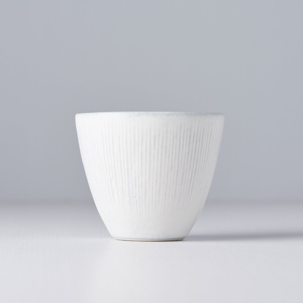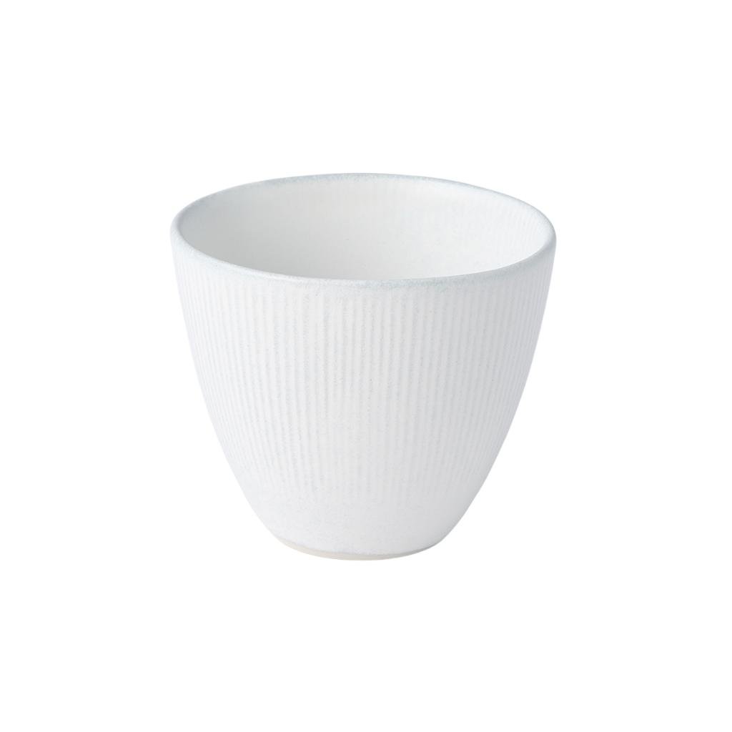 - Kuppi SNOW LEAF, jonka tilavuus on 150 ml, tuo rauhallisen tunnelman mattavalkoisella lasitteella ja hienoilla pystysuorilla viivoilla, jotka muistuttavat lumihiutaleiden hiljaista putoamista.