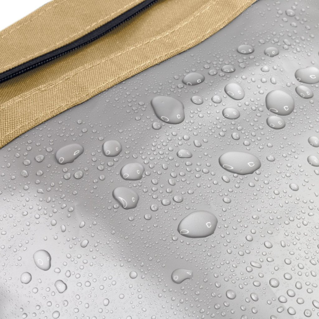 - valmistettu kestävästä kankaasta, jossa on vedenkestävä pinnoite, joka suojaa sisältöä kosteudelta ja lialta myös epäsuotuisalla säällä