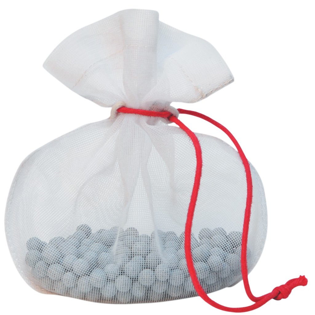 - verkkopussi voidaan laittaa kaulalle ja helmiä voidaan kaataa takaisin siihen karahvista
