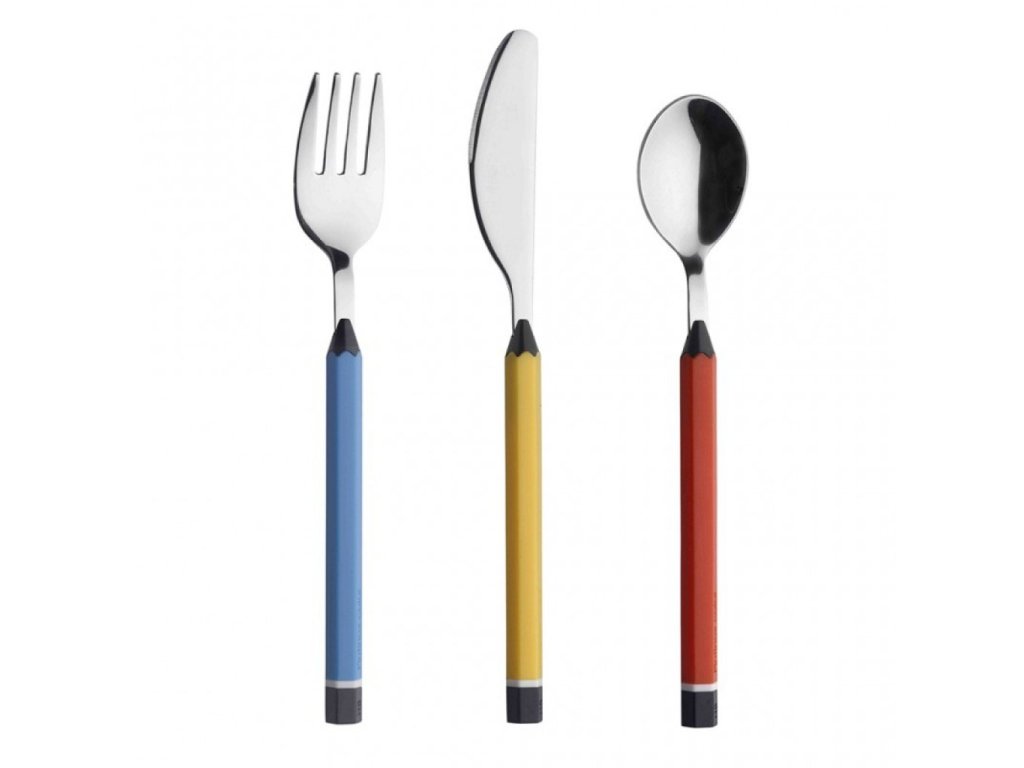 - värikkäät värikynän muotoiset kahvat houkuttelevat lapsia ja motivoivat heitä käyttämään ruokailuvälineitä itsenäisesti