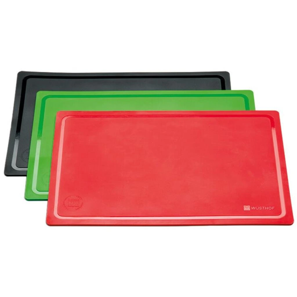 Wüsthof tarjoaa uuden tyylikkään ja toiminnallisen leikkuualustan, joka on valmistettu termoplastisesta polyuretaanista (TPU). Erikoismateriaali, jossa on suuri joustavuus, suojaa herkkiä veitsenteriä. Näin veitset pysyvät terävinä pidempään. Muovimateriaali ei ime hajuja ja hajuja, ja se voidaan steriloida. Kaada muovityynyn päälle 150 °C:seen kiehuvaa vettä, ja se steriloituu 30 sekunnissa. Moderni leikkuumatto teräville veitsille, joka on välttämätön jokaisessa keittiössä.