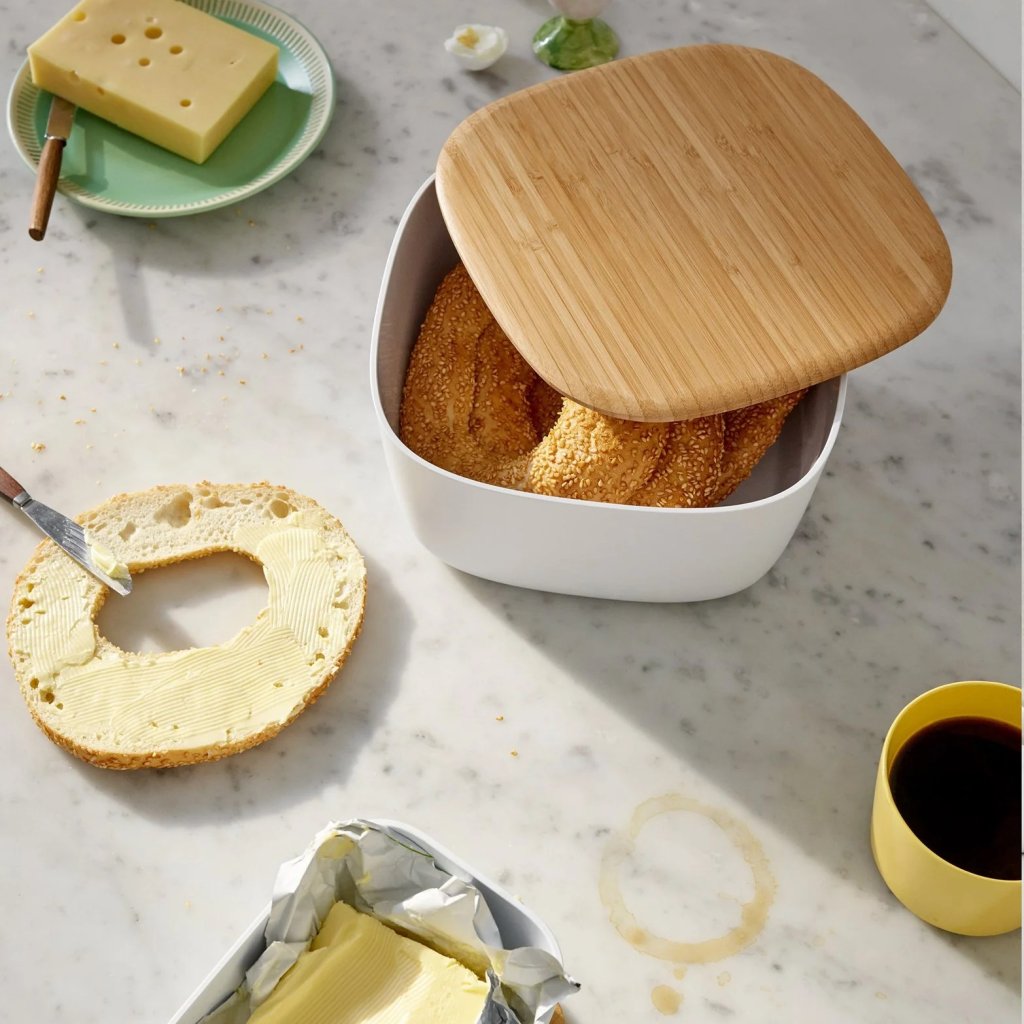 Leipälaatikko BOX-IT 23 cm, valkoinen, muovi / bambu, RIG-TIG