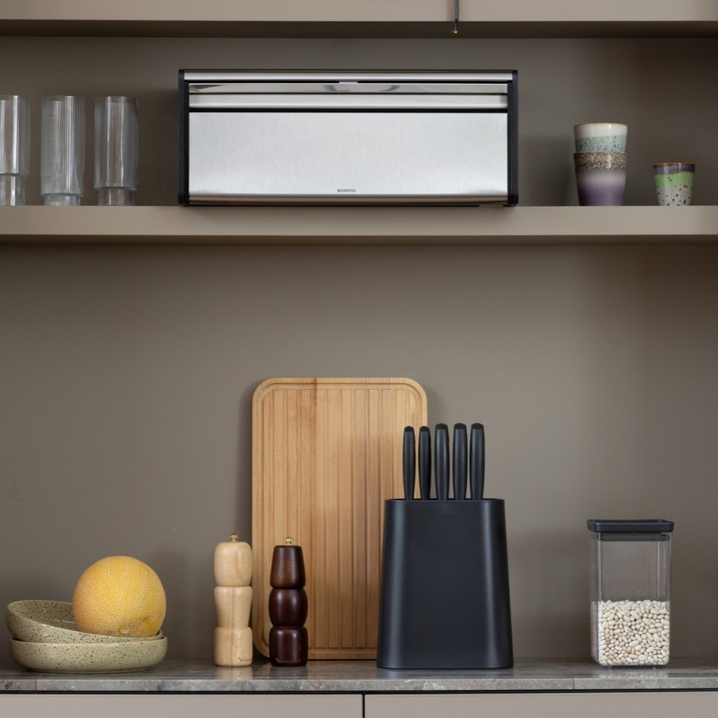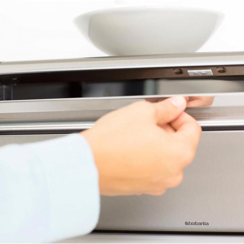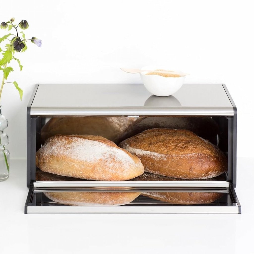 - käytännöllinen leipälaatikko Brabantia FALL FRONT on suunniteltu jopa kahden leivän säilyttämiseen viemättä tarpeetonta tilaa