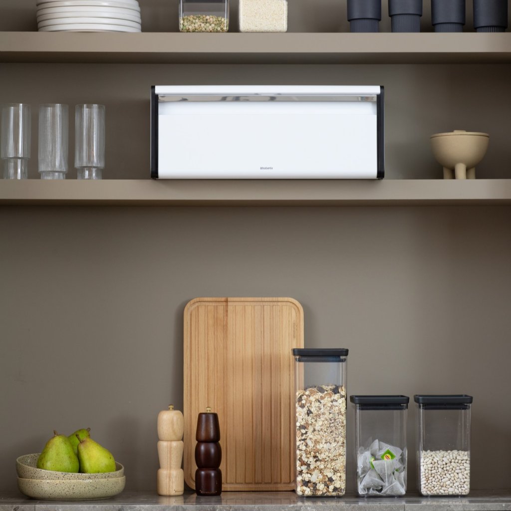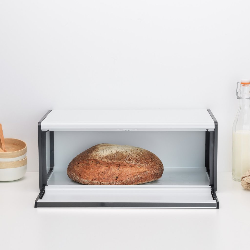 - Käytännöllinen leipälaatikko Brabantia FALL FRONT tyylikkään valkoisena on suunniteltu jopa kahden leivän säilyttämiseen viemättä tarpeetonta tilaa