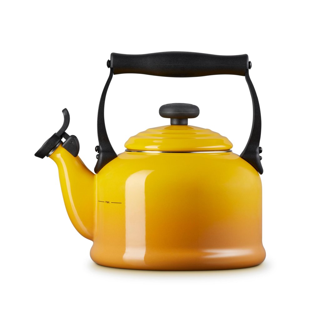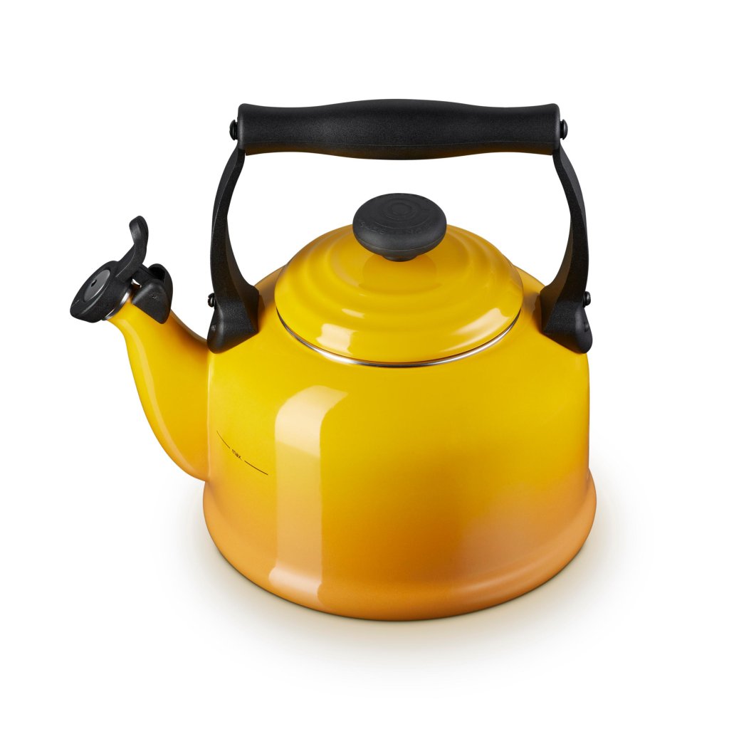 - Liedelle laitettava vedenkeitin Le Creuset TRADITIONAL sävyssä NECTAR on elegantti ja toimiva lisä mihin tahansa keittiöön, joka ilmoittaa kiehumispisteen tunnusomaisella viheltävällä äänellä.