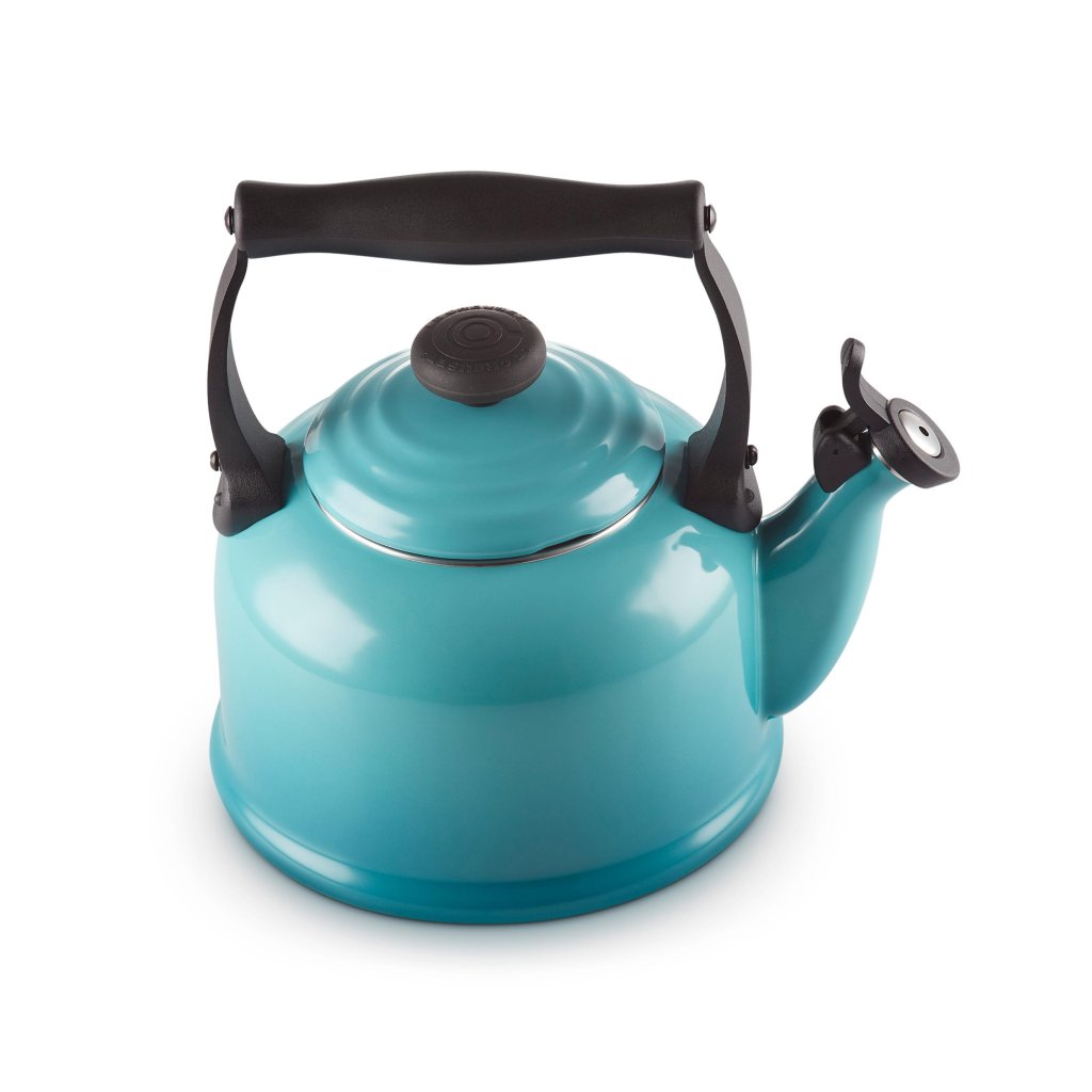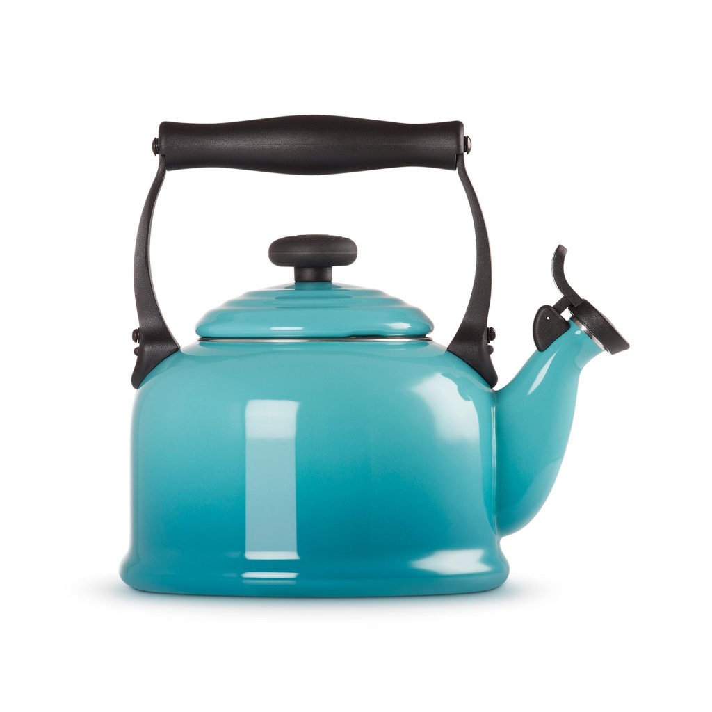 - Liedelle laitettava vedenkeitin Le Creuset TRADITIONAL sävyssä TEAL on elegantti ja toimiva lisä mihin tahansa keittiöön, joka ilmoittaa kiehumispisteen tunnusomaisella viheltävällä äänellä.