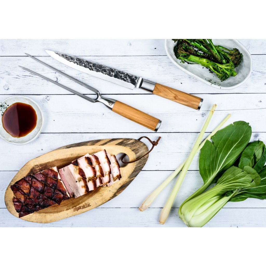 Olive-sarjassa on tyylikäs ja tyylikäs muotoilu yhdistettynä kestävään rakenteeseen. Pyöristetty oliivipuukahva on mukava pitää kädessä, ja veitsi tuntuu tasapainoisen teräasennuksen ansiosta kokonaisvaltaiselta. Hollantilaiselle tuotemerkille Forged on ominaista erityiset mielikuvitukselliset veitset, jotka on valmistettu käsin japanilaisesta teräksestä. Nämä ovat ainutlaatuisia ja korkealaatuisia tuotteita, ei ainoastaan materiaalien vaan myös työn laadun osalta. Veitset ja muut työvälineet on myös pakattu kauniisiin poltetusta puusta valmistettuihin lahjalaatikoihin. Loistava apuri ja suunnittelun lisävaruste koti- ja ammattikeittiöihin.