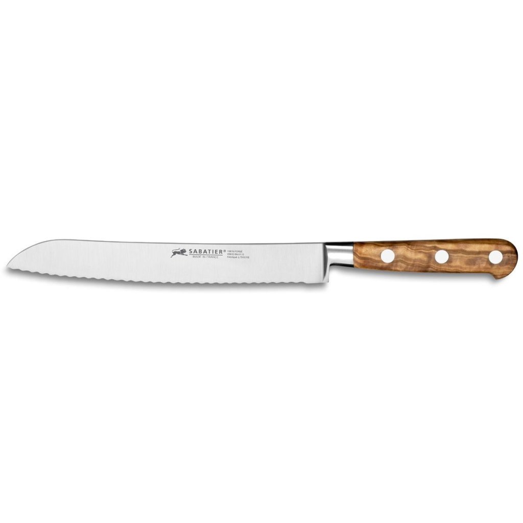 - veitsissä on ergonomiset oliivipuiset kahvat, joissa on ruostumattomasta teräksestä valmistetut niitit