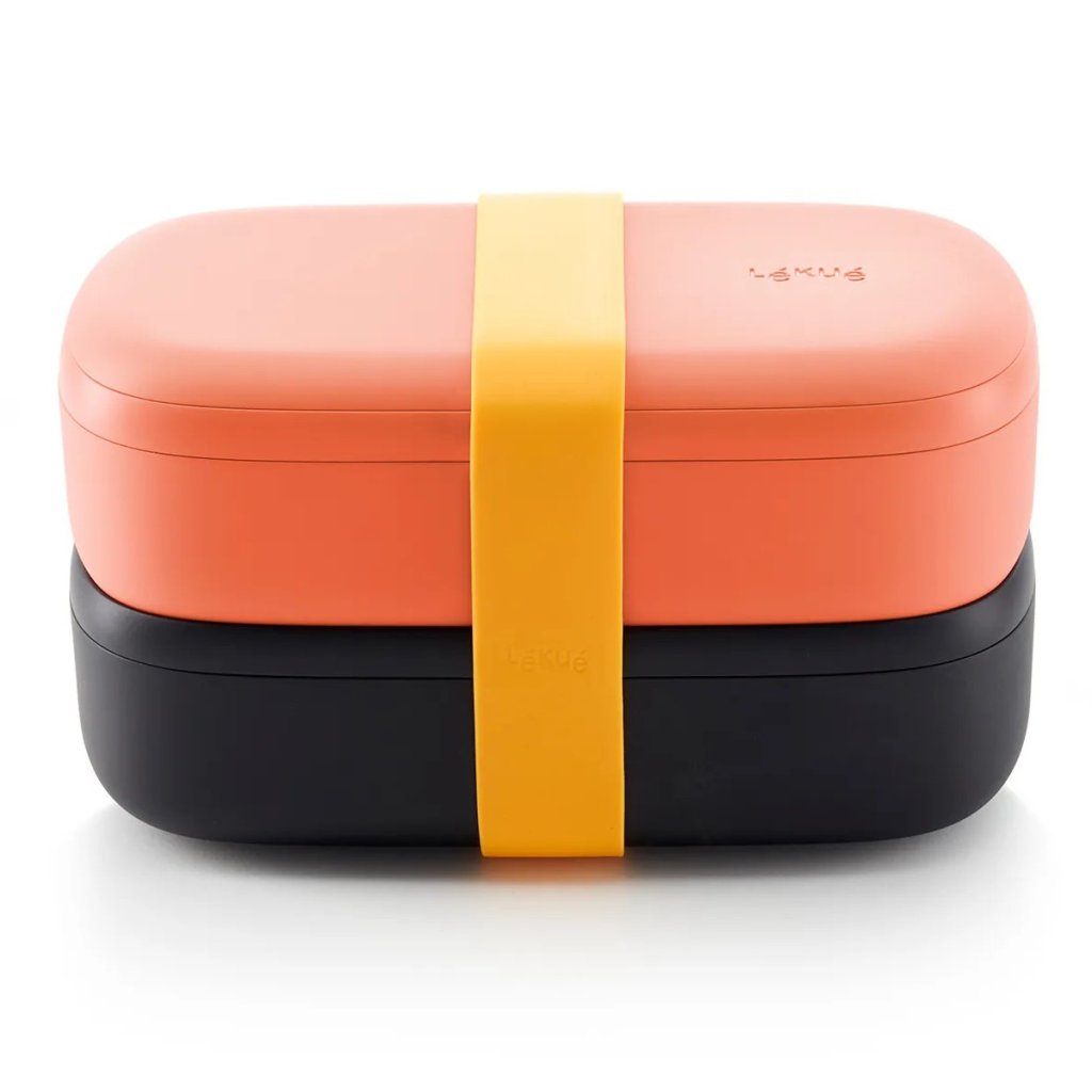 Lékué-lounaslaatikko TO GO 2 x 500 ml, tupla, koralli/musta
