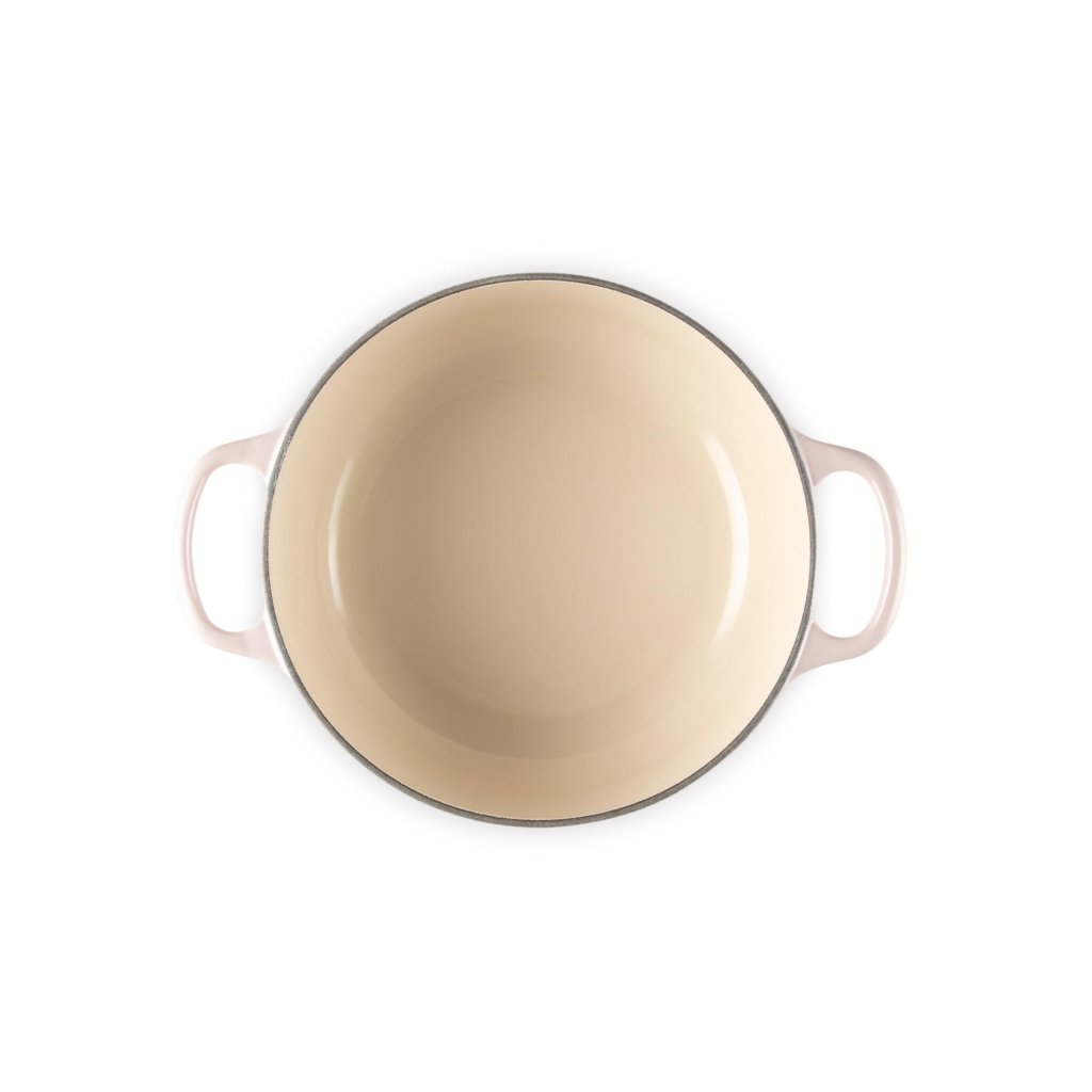- Ikoninen valurauta matala pata Le Creuset värissä SHELL PINK on kulinaarinen klassikko, joka on rikastuttanut keittiöitä ympäri maailmaa yli vuosisadan ajan.
