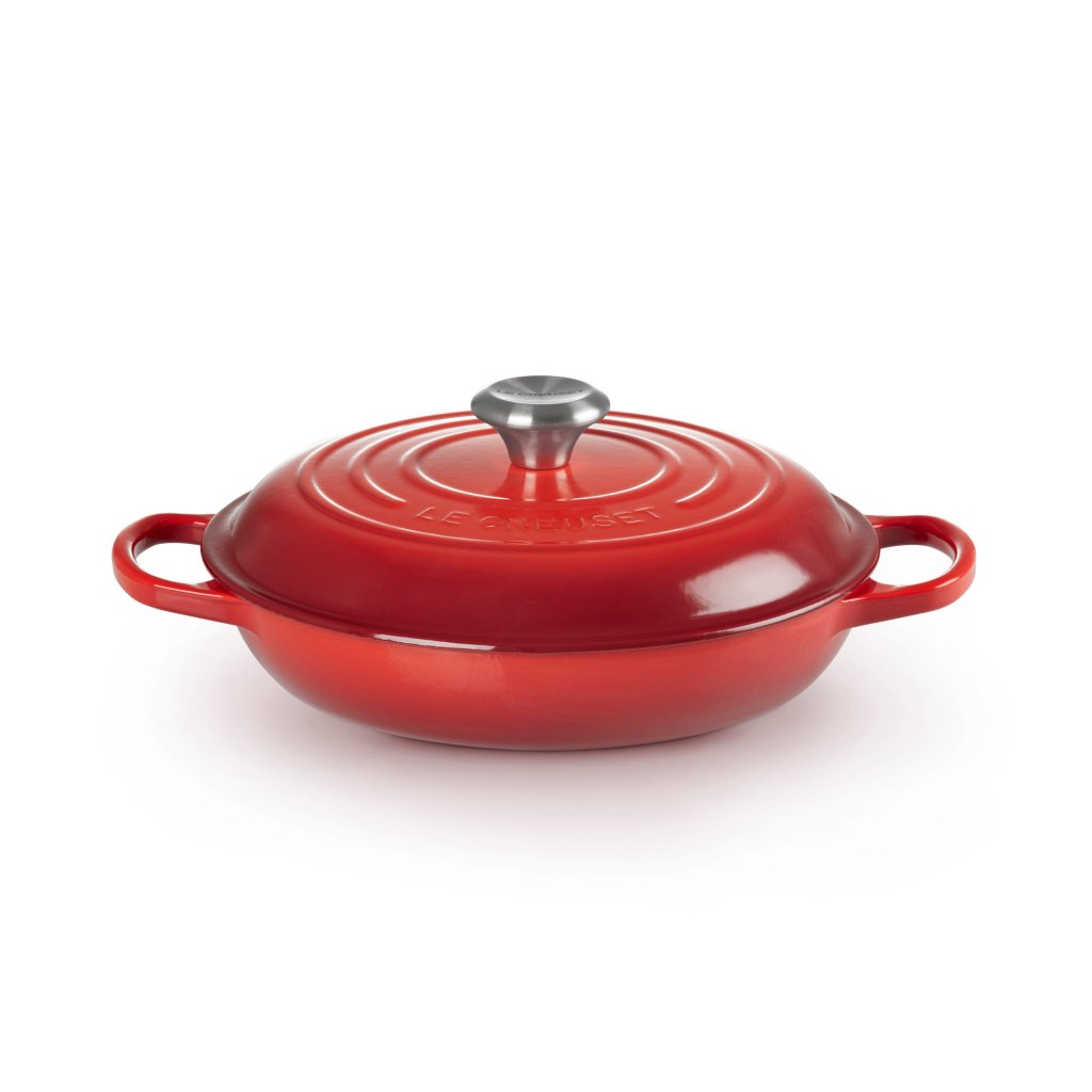 - Ranskassa valmistettu, matala pata Le Creuset -valurautapannu, jonka väri on CERISE , on yksi merkin legendaarisista tuotteista. Se sopii erinomaisesti hauduttamiseen, paistamiseen, leivontaan ja grillaamiseen 2–4 hengelle.