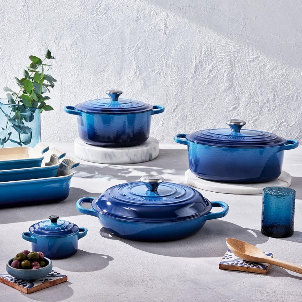 - Ikoninen valurauta matala pata Le Creuset värissä AZURE on keittiövälineiden ikoni, suosittu kaikkialla maailmassa ja ihanteellinen keittojen, muhennosten, paistien ja leivonnaisten erikoisuuksien valmistukseen.