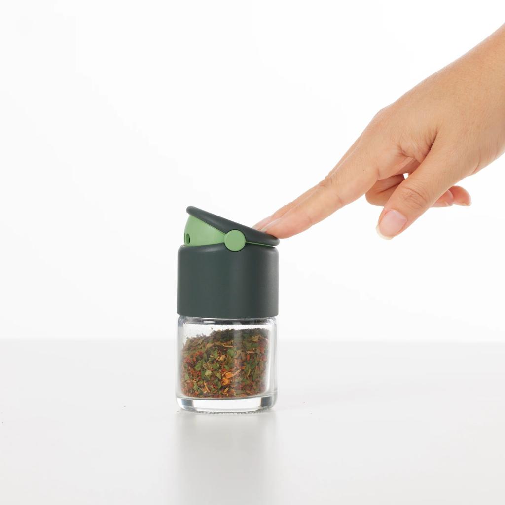 Kun toisessa kädessä on puulusikka ja toisessa paniikki, sormivoimistelussa maustepurkki on viimeinen asia, mitä tarvitset. Tässä harmaassa annostelijassa on kansi, joka avataan yksinkertaisella napsautuksella, ja kaksi annosteluvaihtoehtoa, joten oregano ei päädy tiskipöydälle vaan sinne, minne sen kuuluukin - ruoan päälle, ei keittiön katastrofikronikkaan.