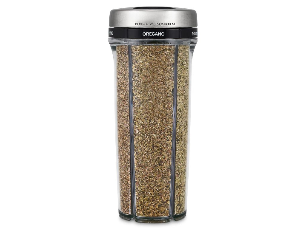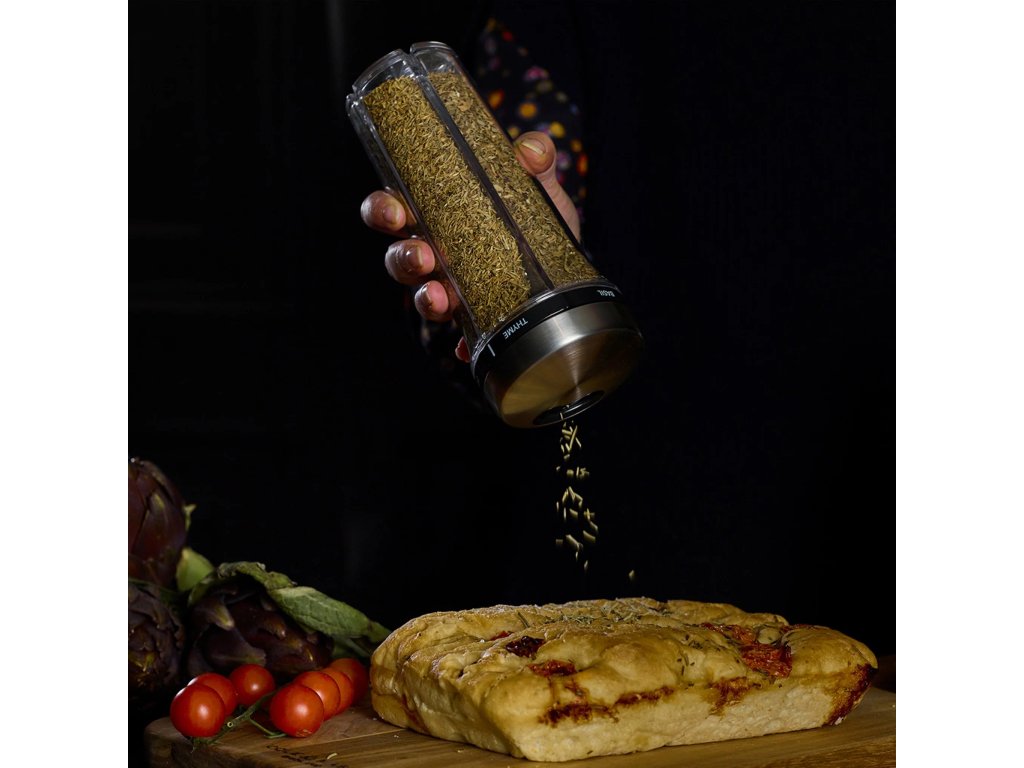 - sisältää viisi erillistä kammiota, jotka on täytetty suosikkiyrteilläsi - oreganolla, timjamilla, basilikalla, rosmariinilla ja persiljalla