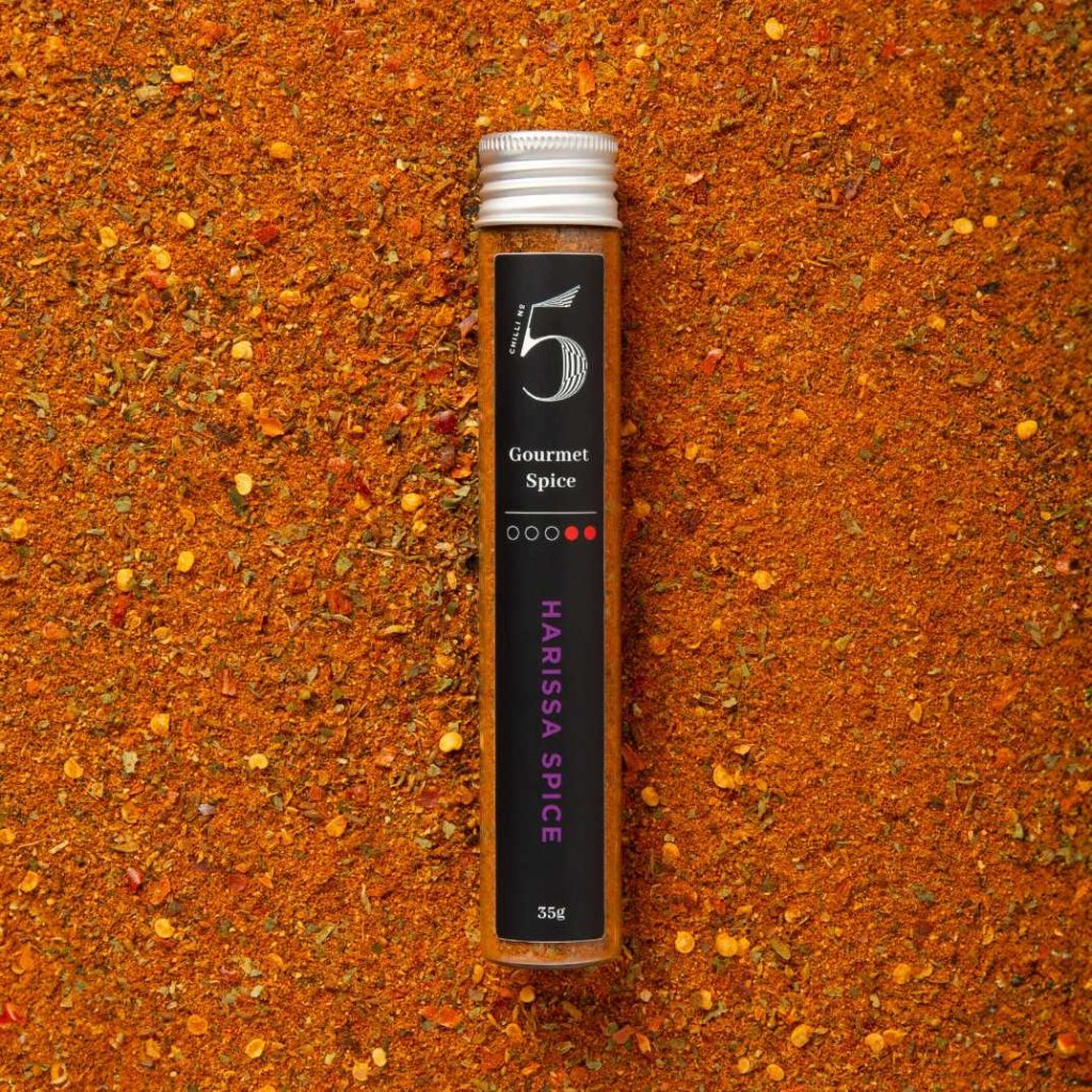 - HARRISA SPICE osoitteesta Chilli No5 on pohjoisafrikkalaisesta keittiöstä inspiroitunut maustesekoitus, joka tuo savuisia, aromaattisia ja mausteisia vivahteita jokaiseen ruokaan.