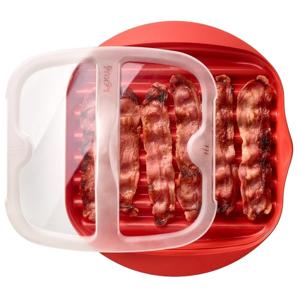 - mikroaaltouunin pekonikeittimellä voit valmistaa 6 viipaletta pekonia alle 3 minuutissa