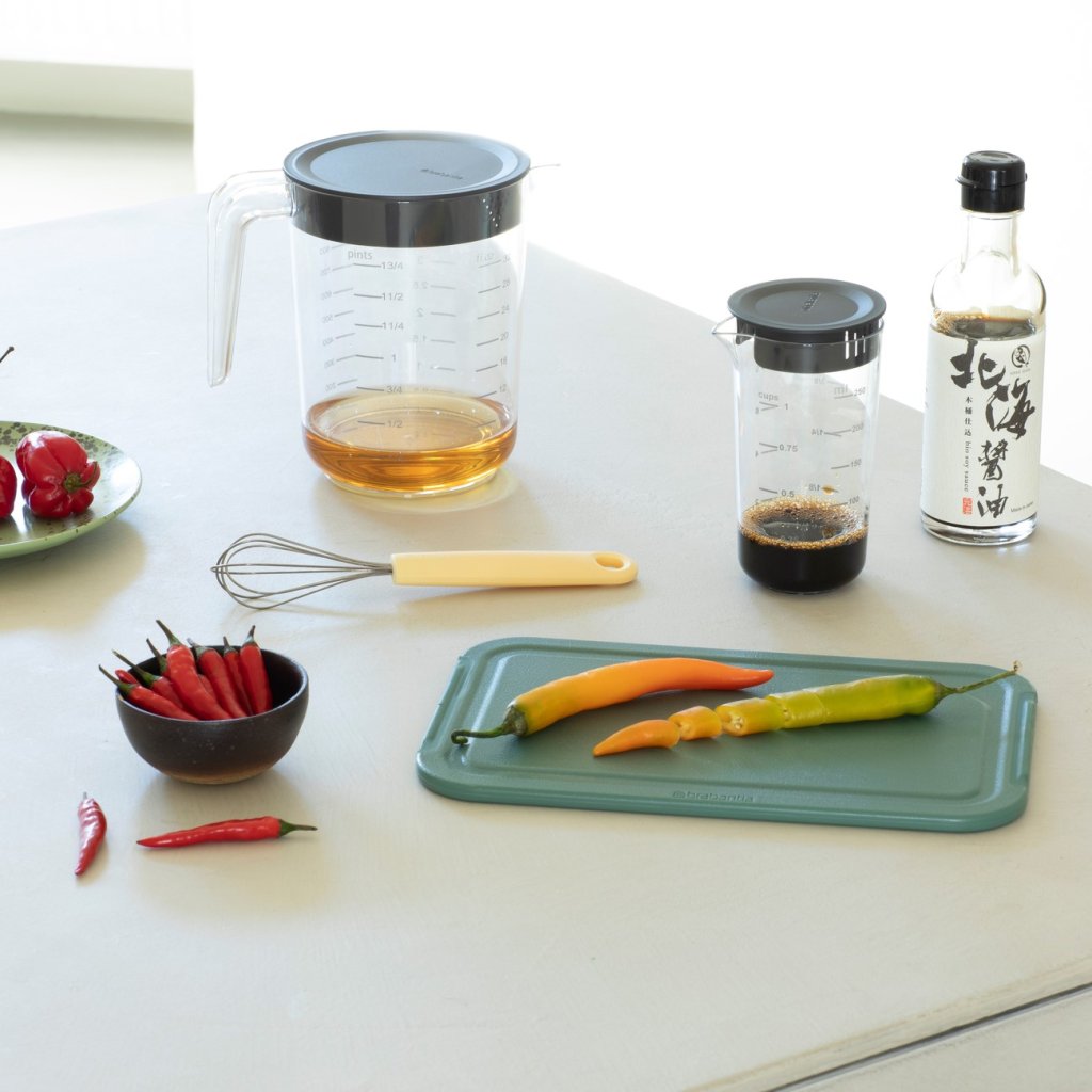 - Mittakuppisarja Brabantia TASTY+ sisältää kaksi käytännöllistä 250 ml:n ja 1 litran tilavuuksista valmistettua astiaa ainesosien tarkkaan annosteluun.