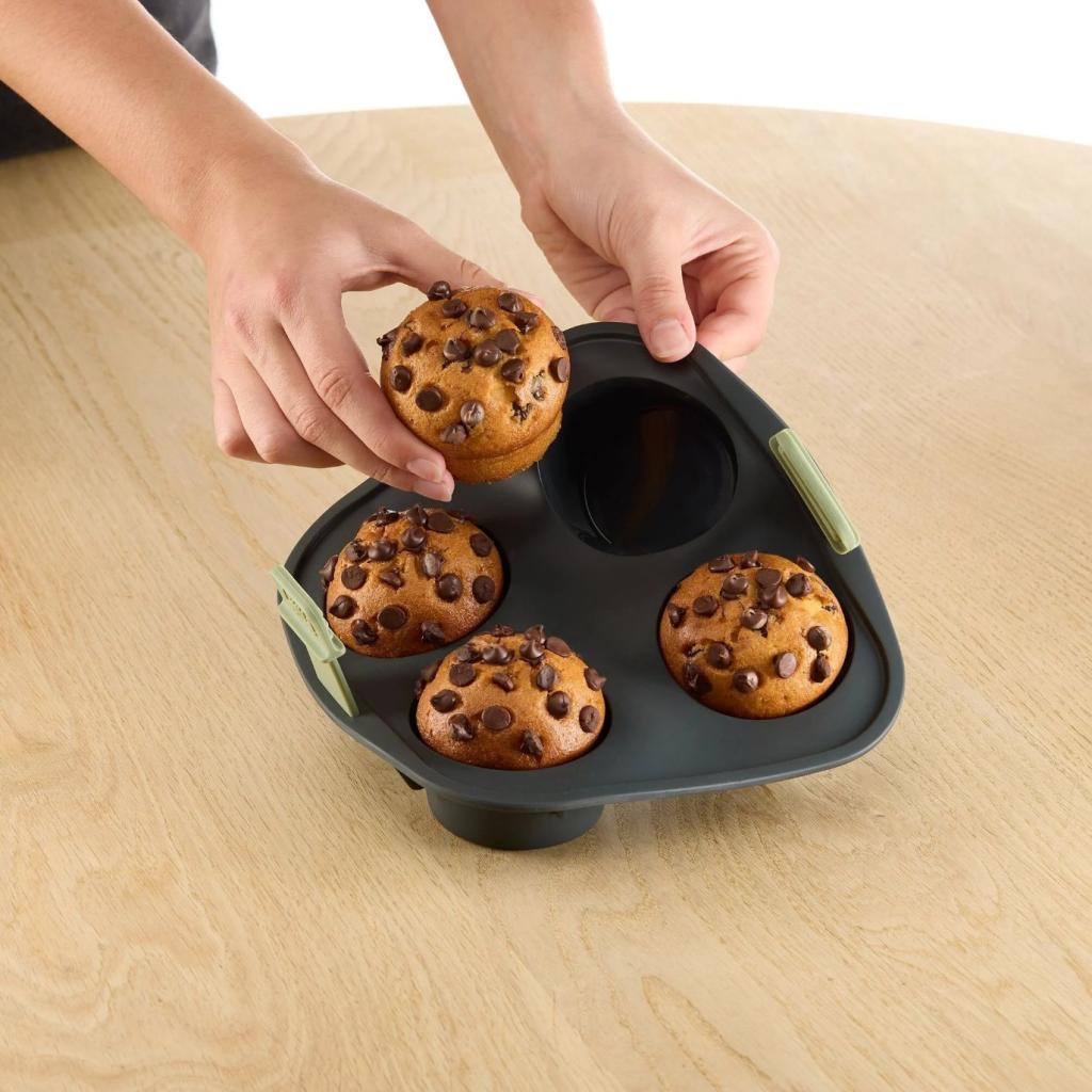 - muffinivuoka Lékué on ihanteellinen neljän kuohkean muffinin nopeaan ja helppoon valmistamiseen suoraan kuumailmakeittimessä.