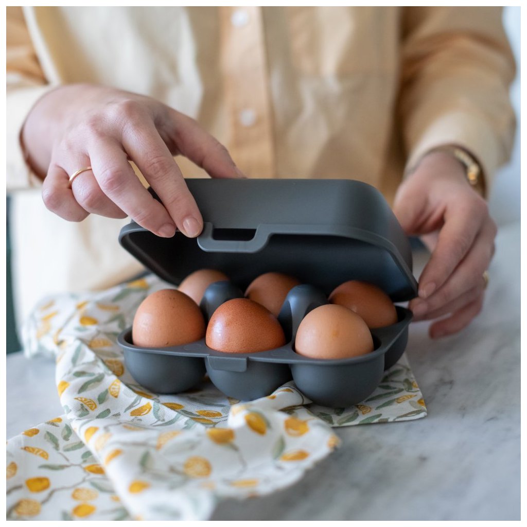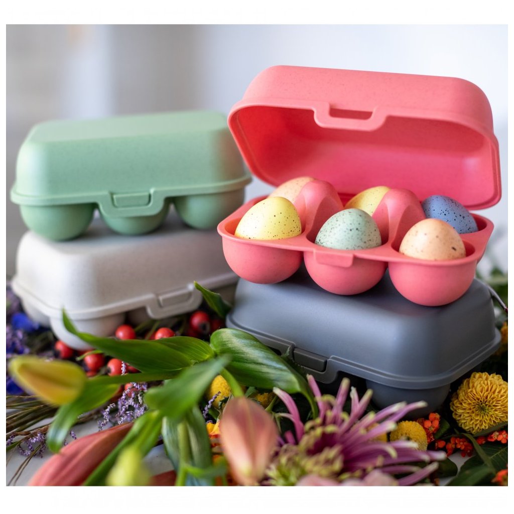Koziol -kananmunien säilytysastia EGGS TO GO MINI 17 cm, 6 munalle, luonnollinen tuhkanharmaa