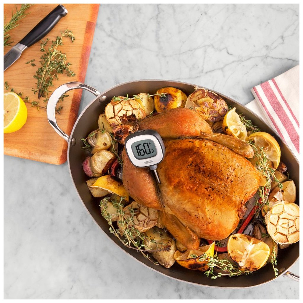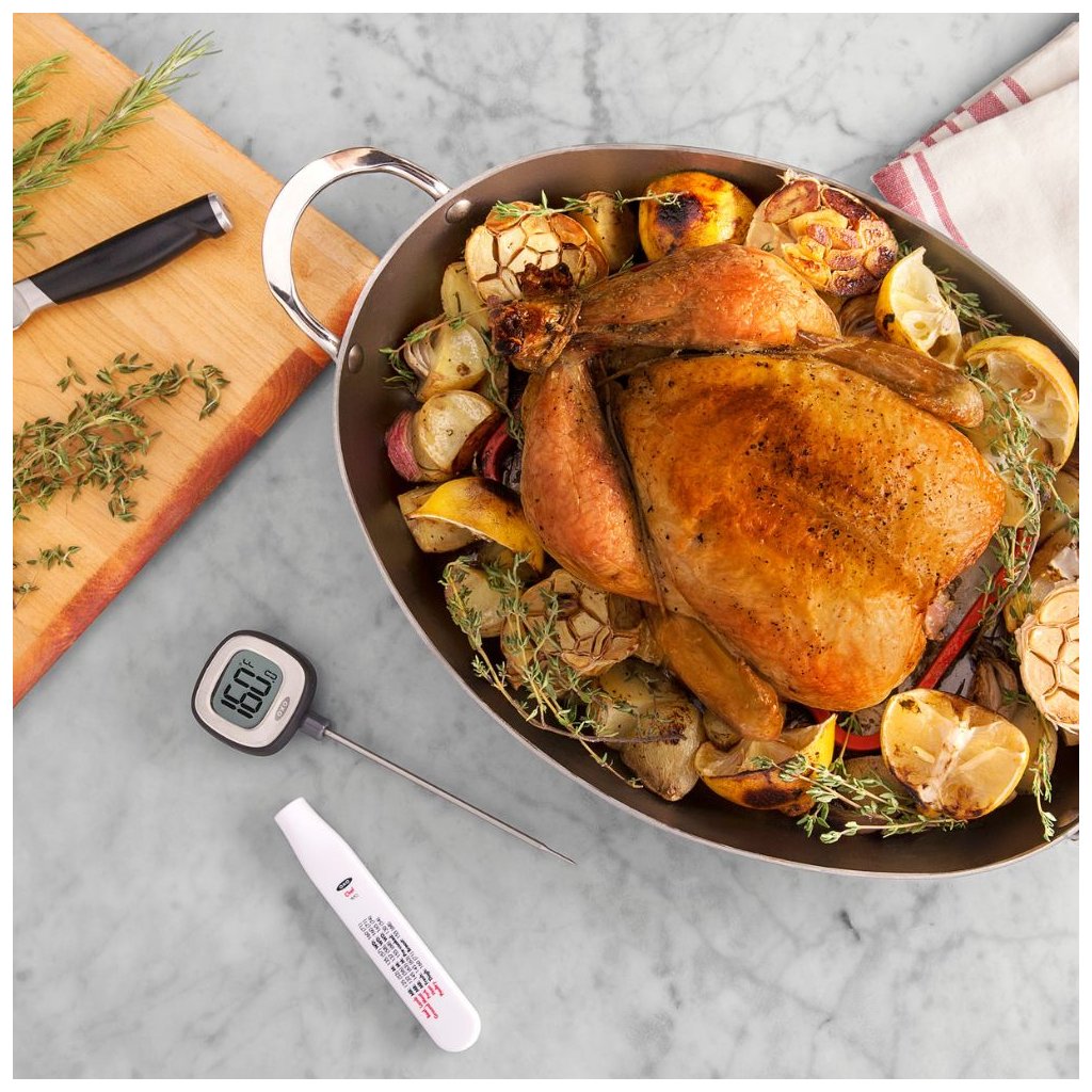 - tarkka digitaalinen lämpömittari antaa sinulle oikean lämpötilatiedon paistetuille lihoille, mereneläville, kakkuille, leiville jne.