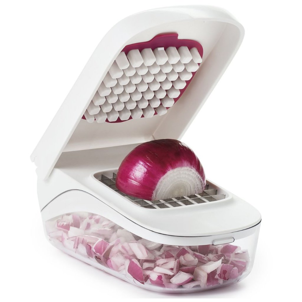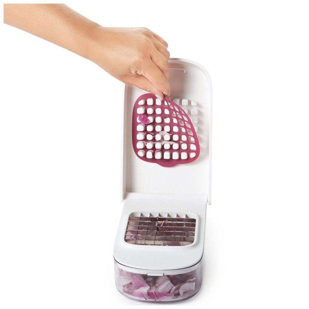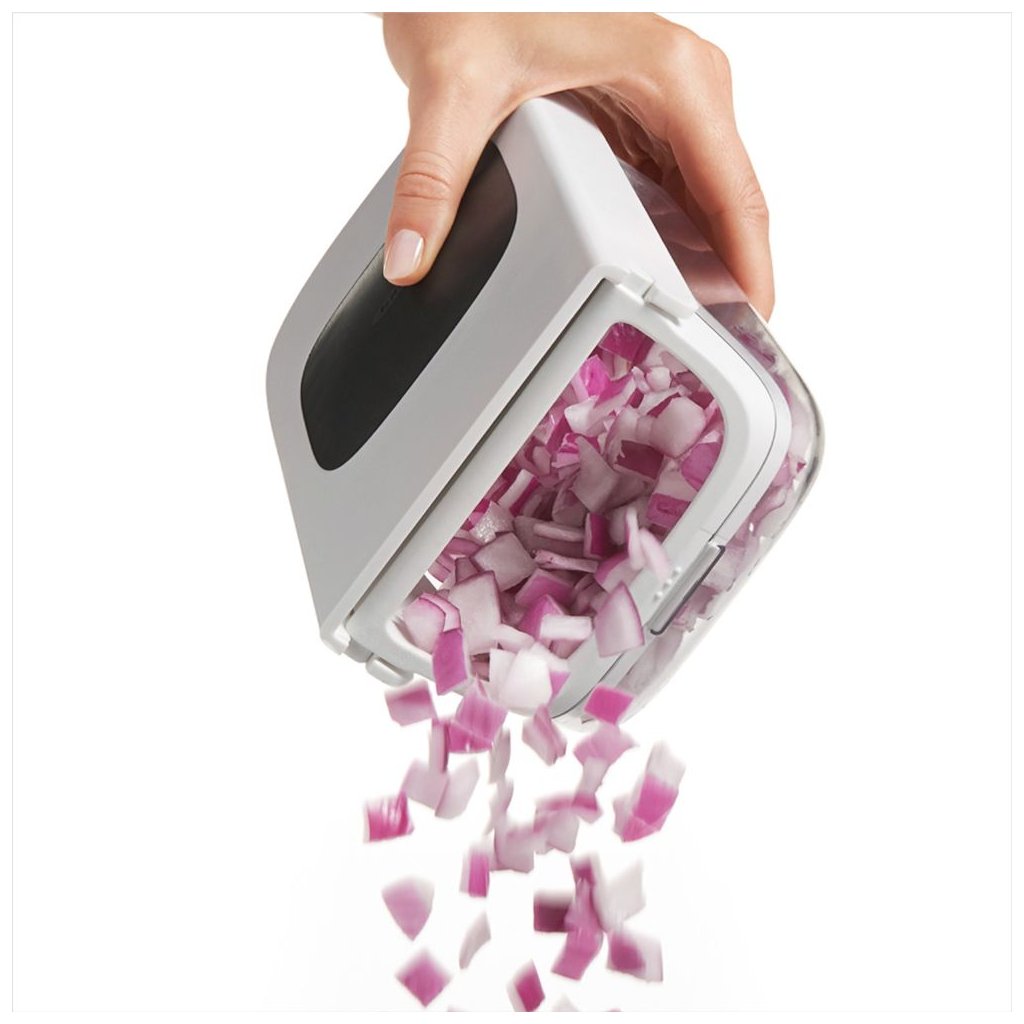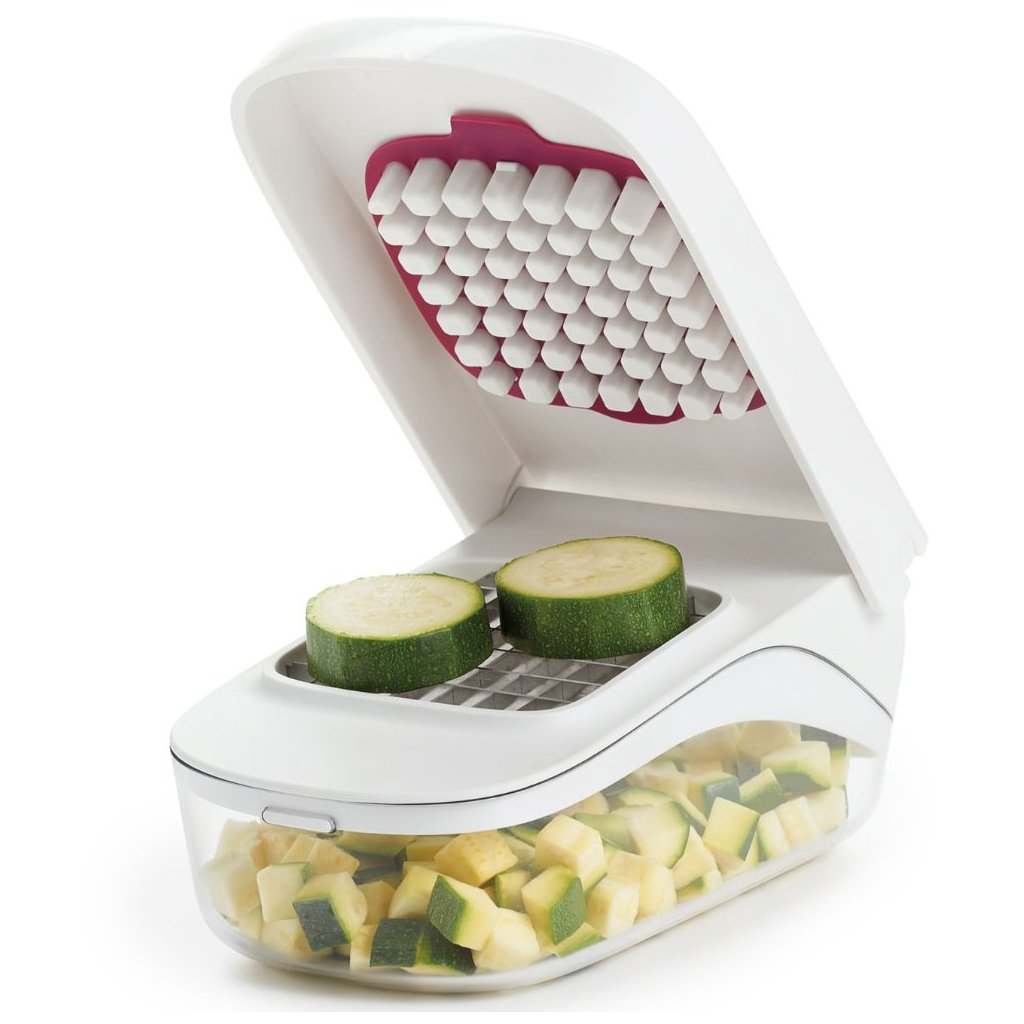 - kuutioi vihannekset ja hedelmät nopeasti, kätevästi ja turvallisesti yhdellä liikkeellä