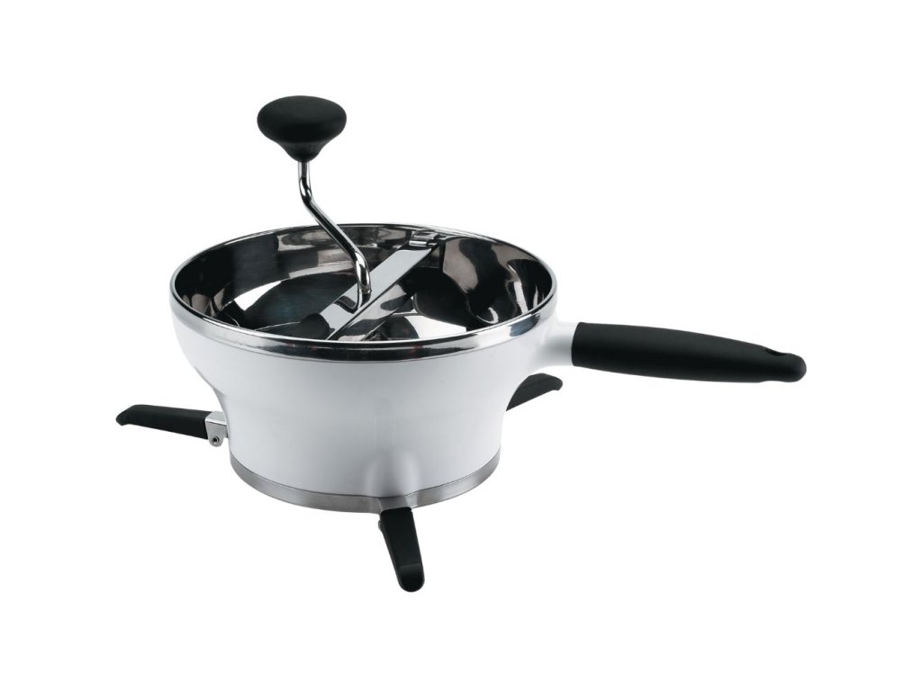 - 3 liukumattoman jalan ansiosta se voidaan asettaa turvallisesti suoraan kulhon tai kattilan päälle