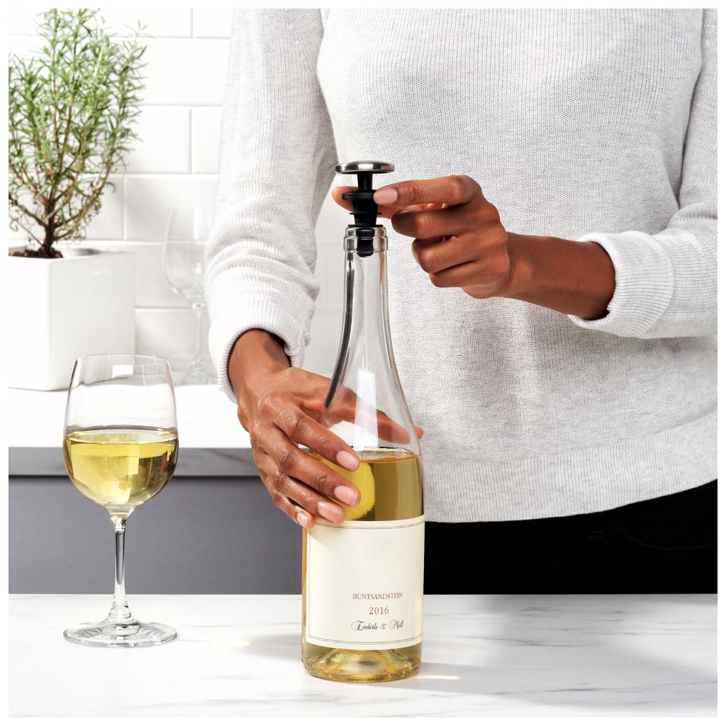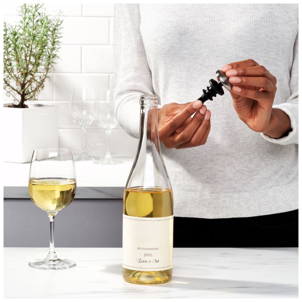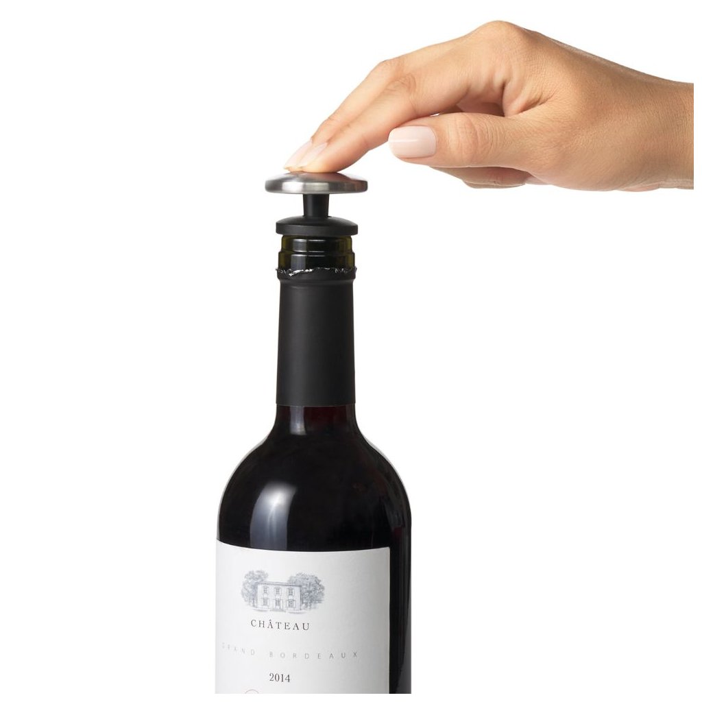- 2 kpl silikonisia viinitulppia, jotka säilyttävät viinin maun ja aromin