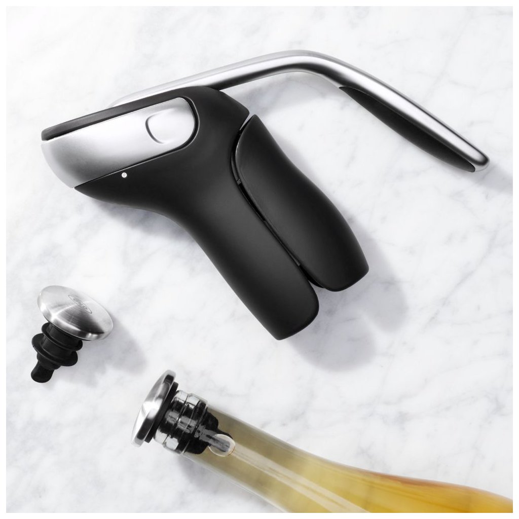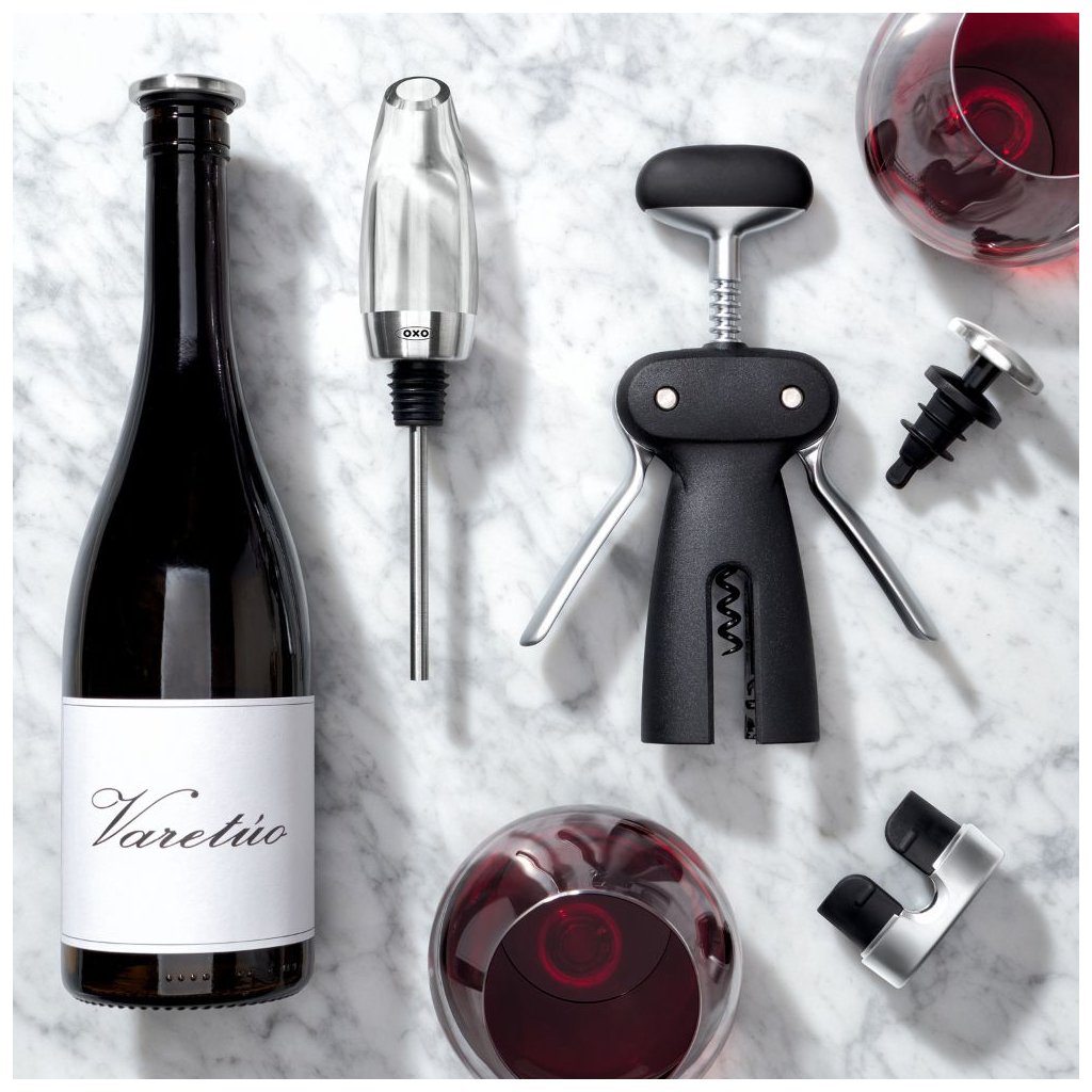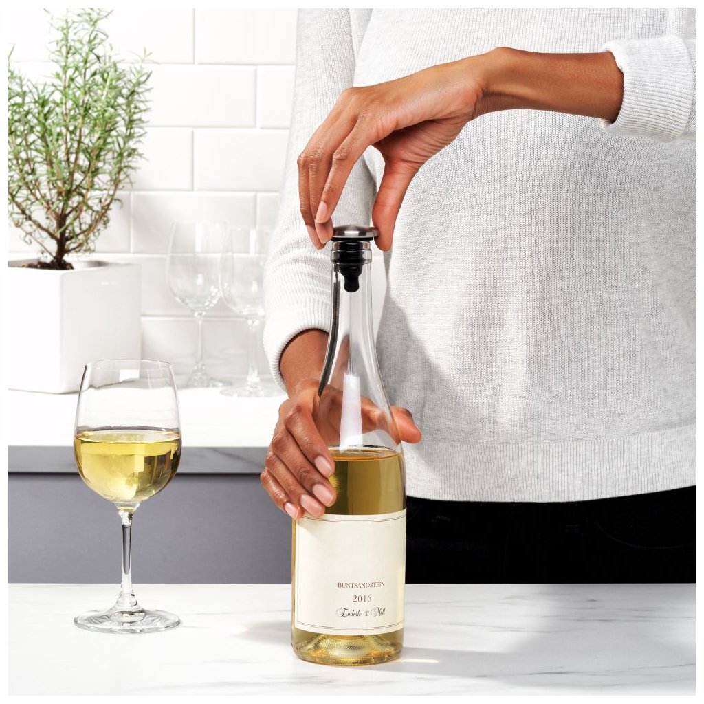 - 2 kpl silikonisia viinitulppia, jotka säilyttävät viinin maun ja aromin