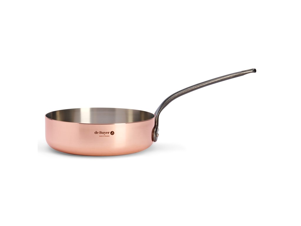- kuparis on yhtä kuin paistokasari de Buyer PRIMA MATERA, halkaisija 24 cm, suunniteltu ruokien nopeaan paistamiseen, karamellisointiin ja esillepanoon.