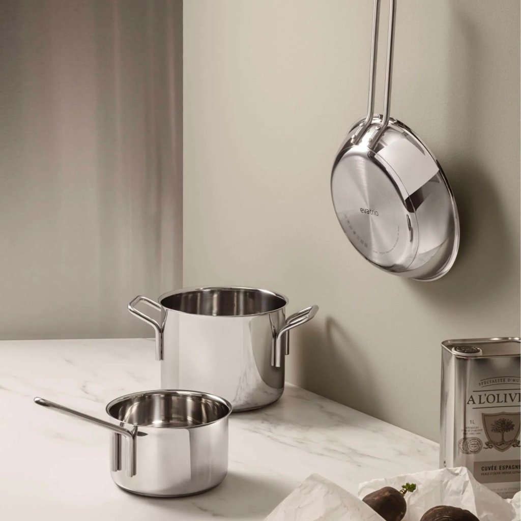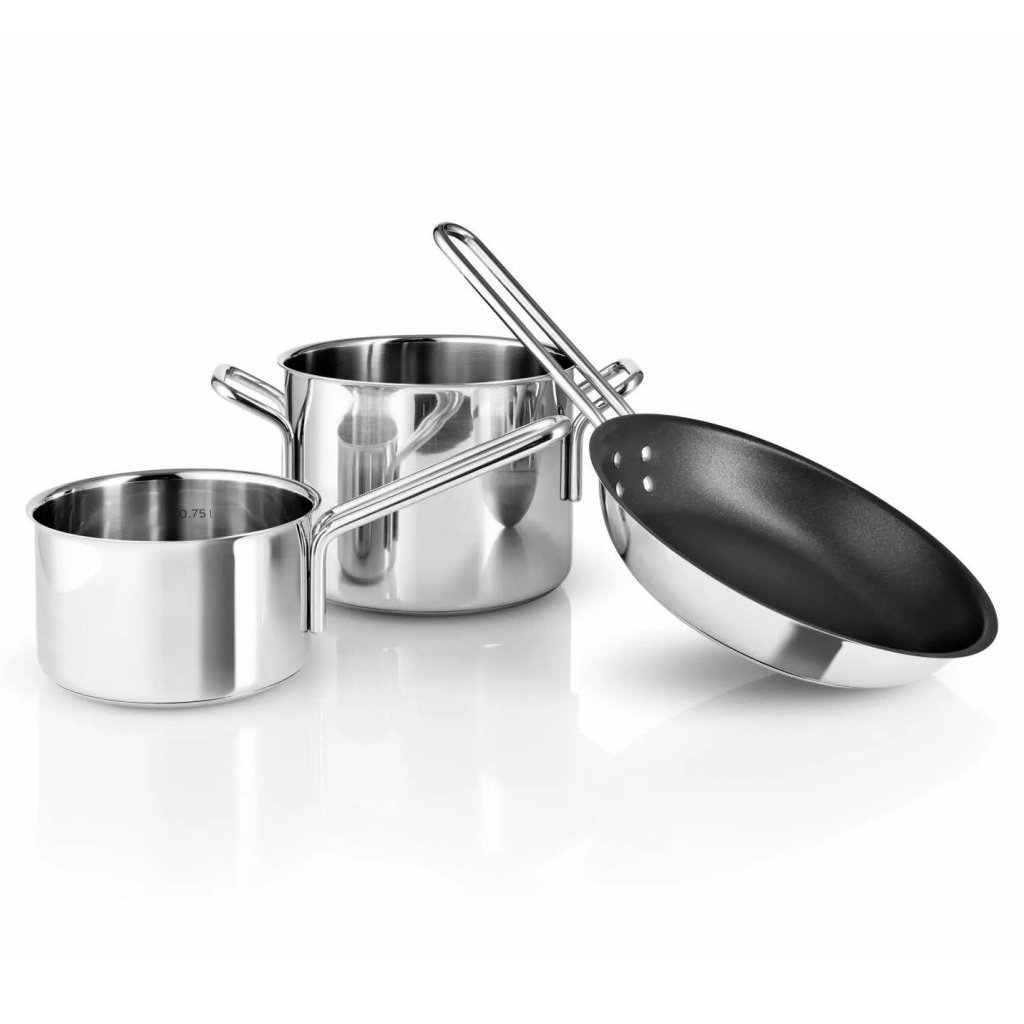 Pannu- ja kattilasetti, 3 kpl sarja, hopeinen, ruostumaton teräs, Eva Solo